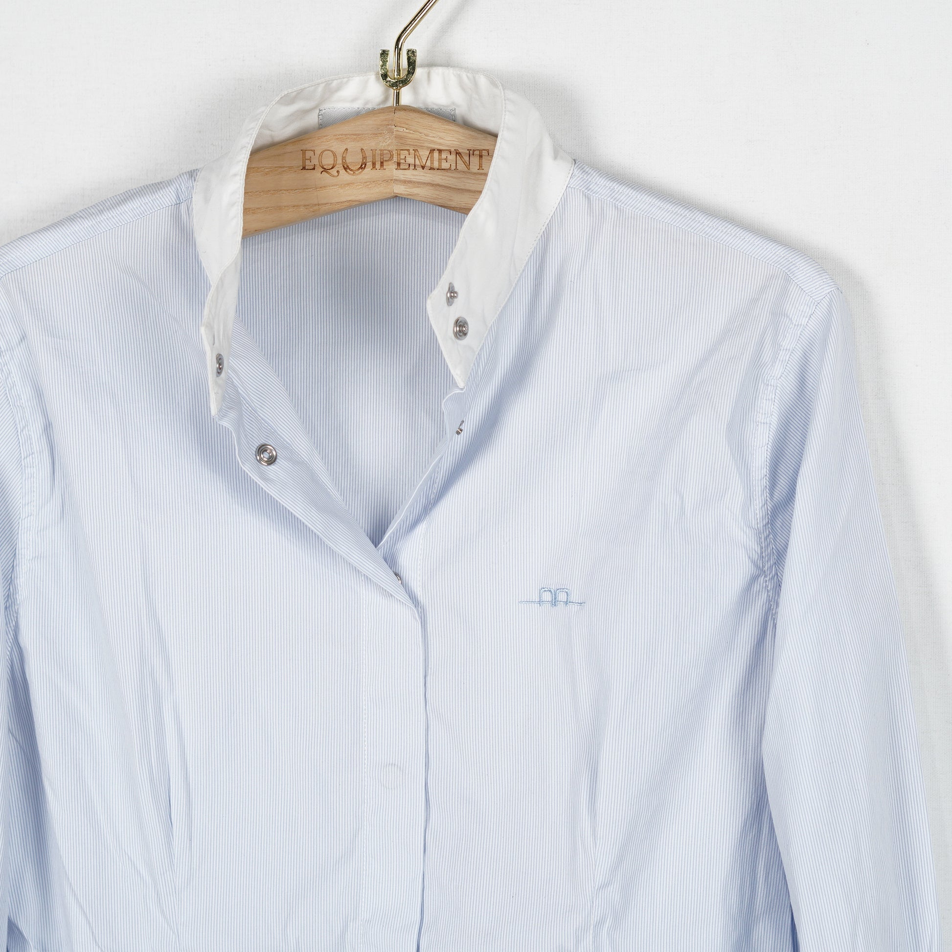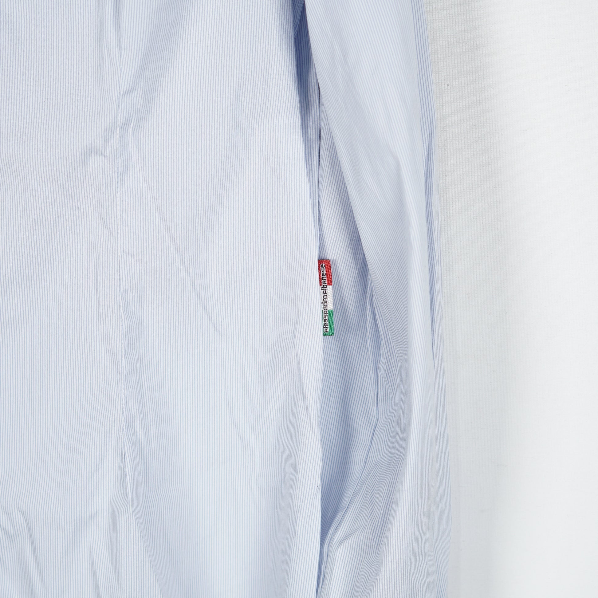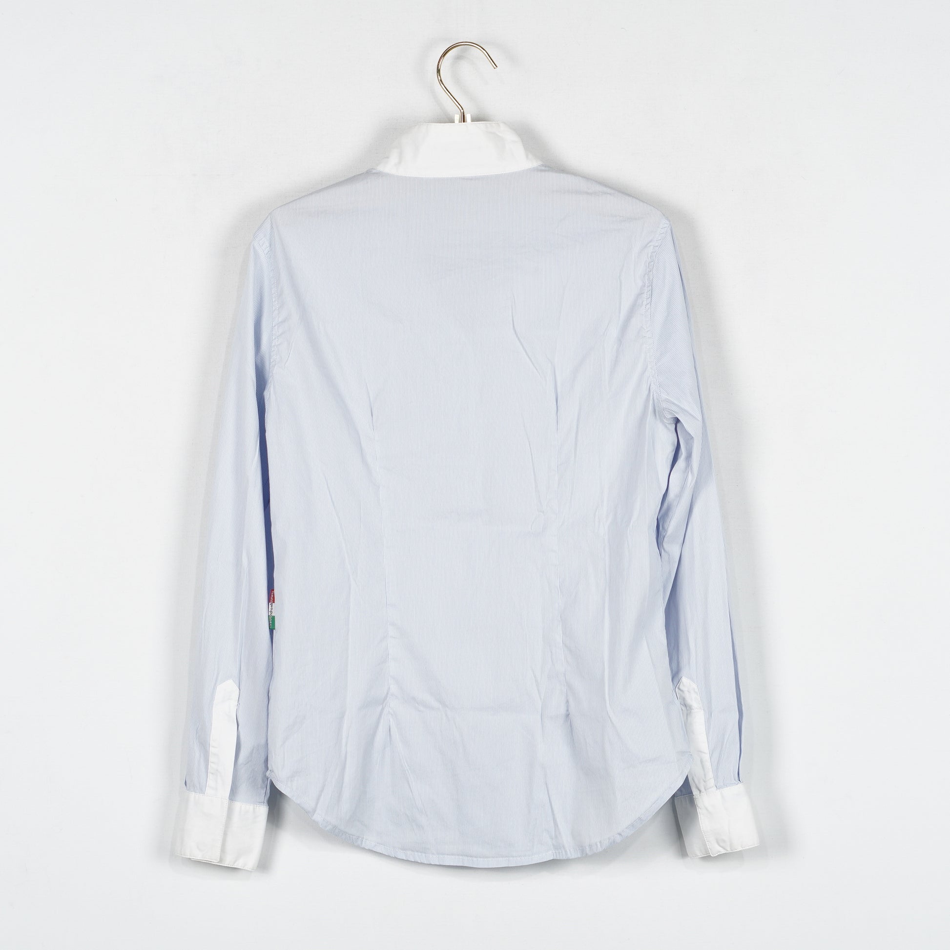 Snygg tävlingsskjorta i ljusblått med dolda knappar och vit krage från Alessandro Albanese.