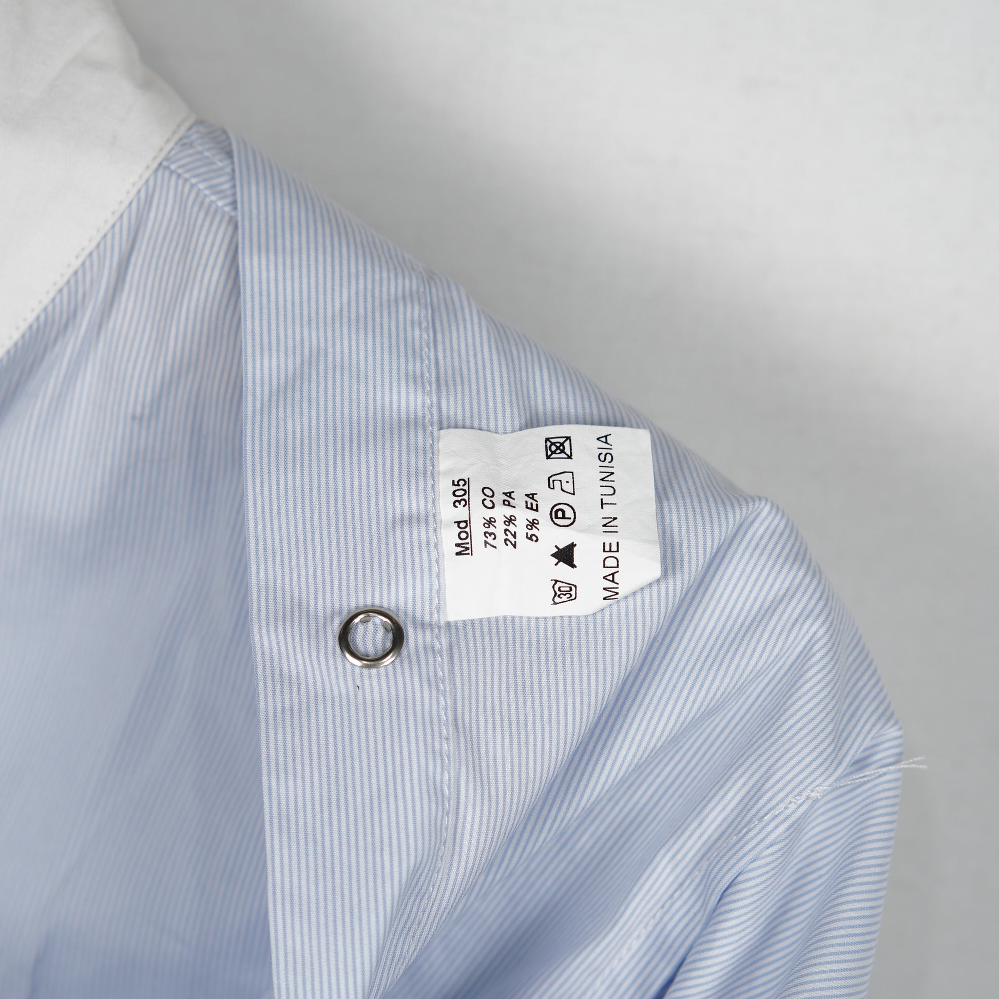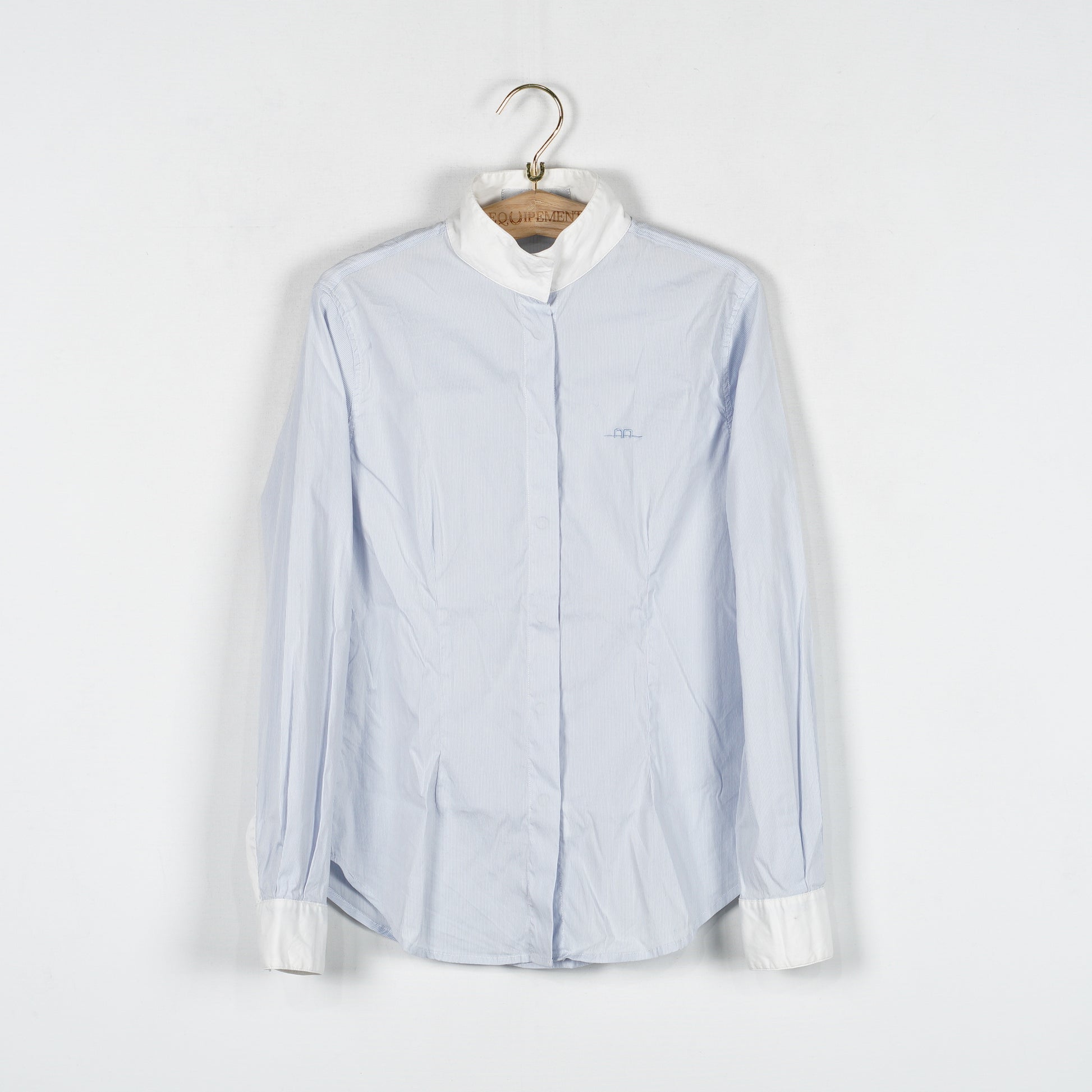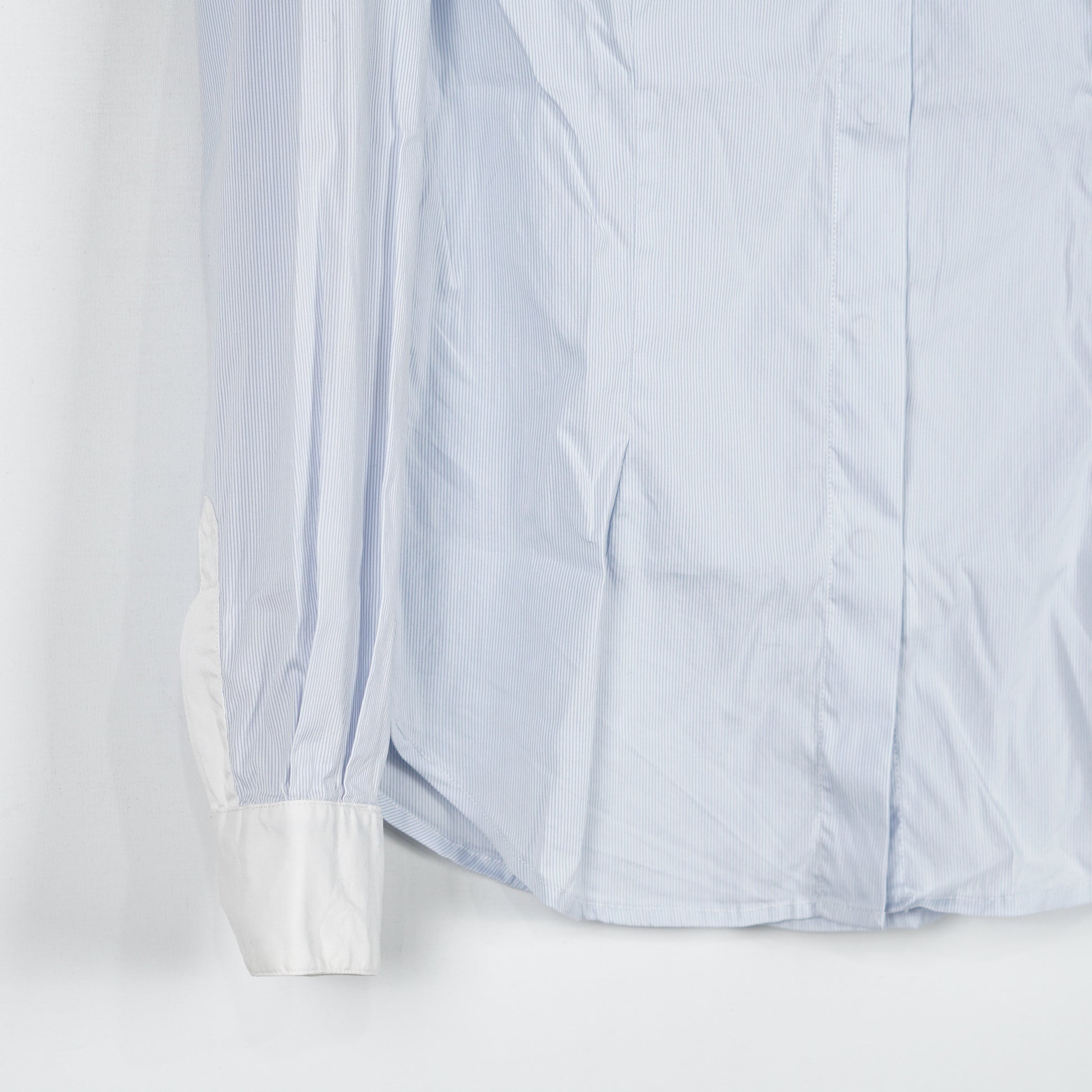 Snygg tävlingsskjorta i ljusblått med dolda knappar och vit krage från Alessandro Albanese.