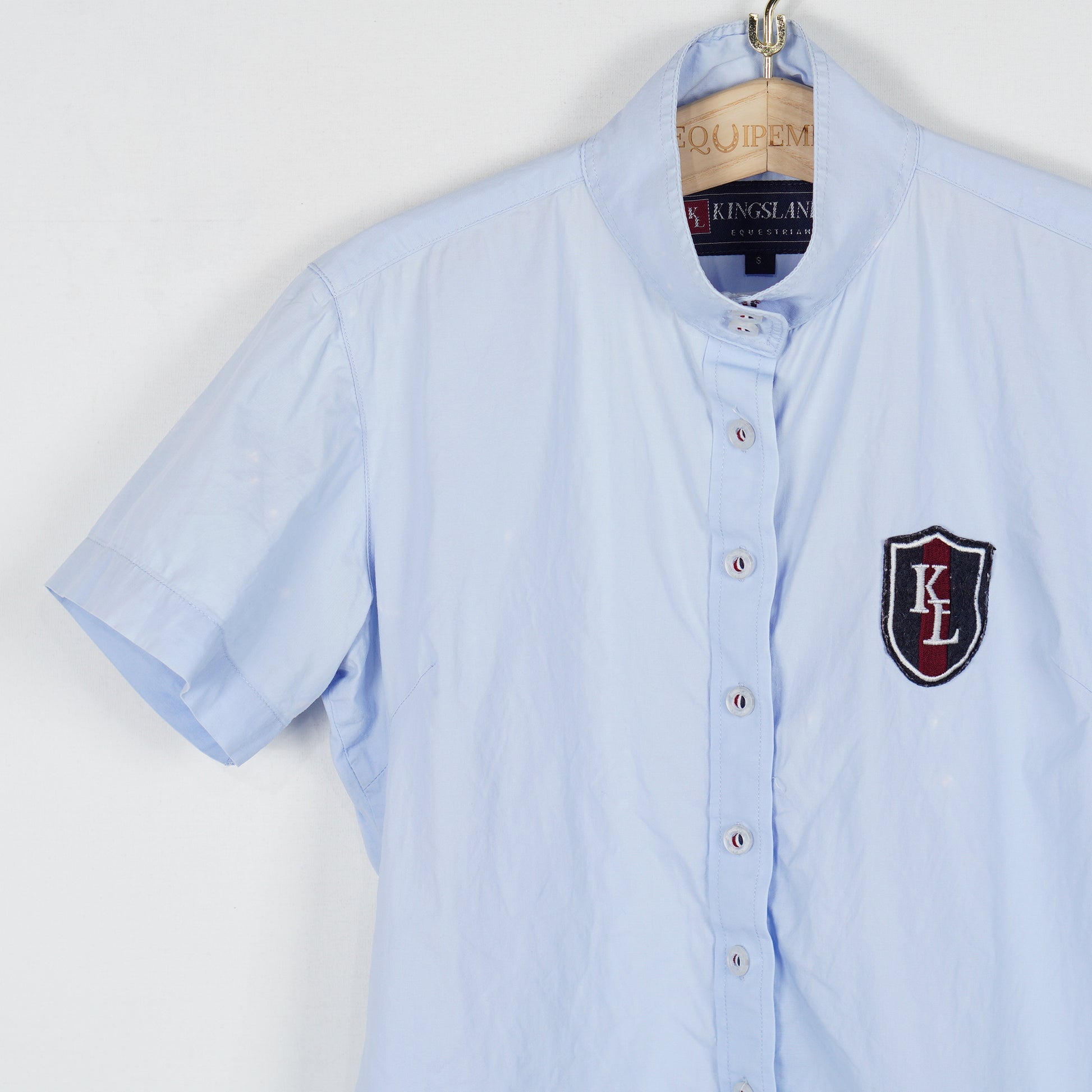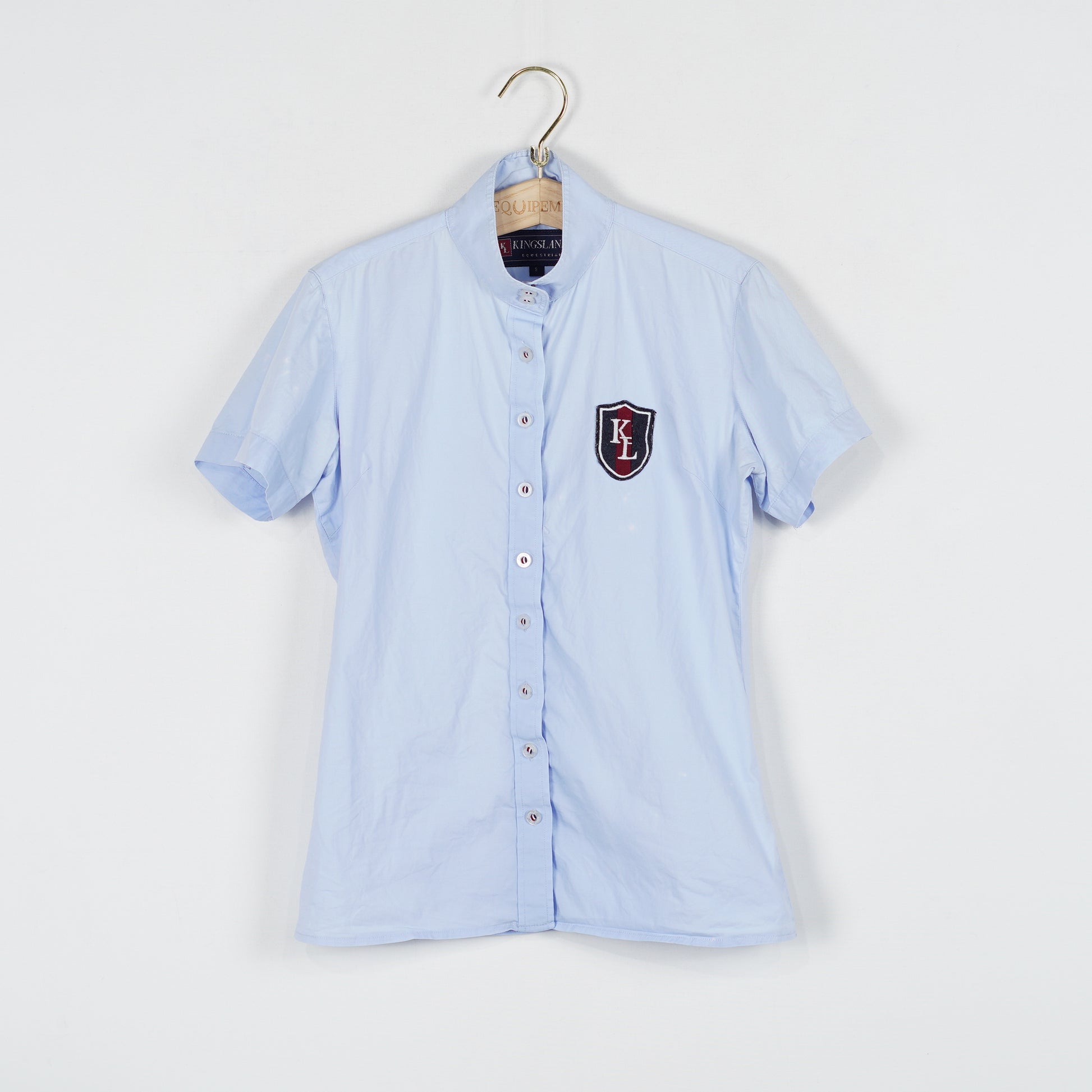 Ljusblå tävlingstopp från Kingsland med knappar fram. Det finns några missfärgningar i tyget, därav skicket.
