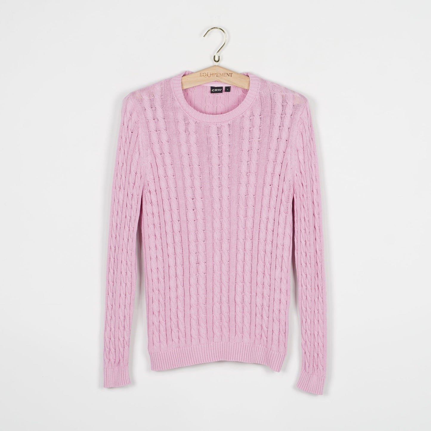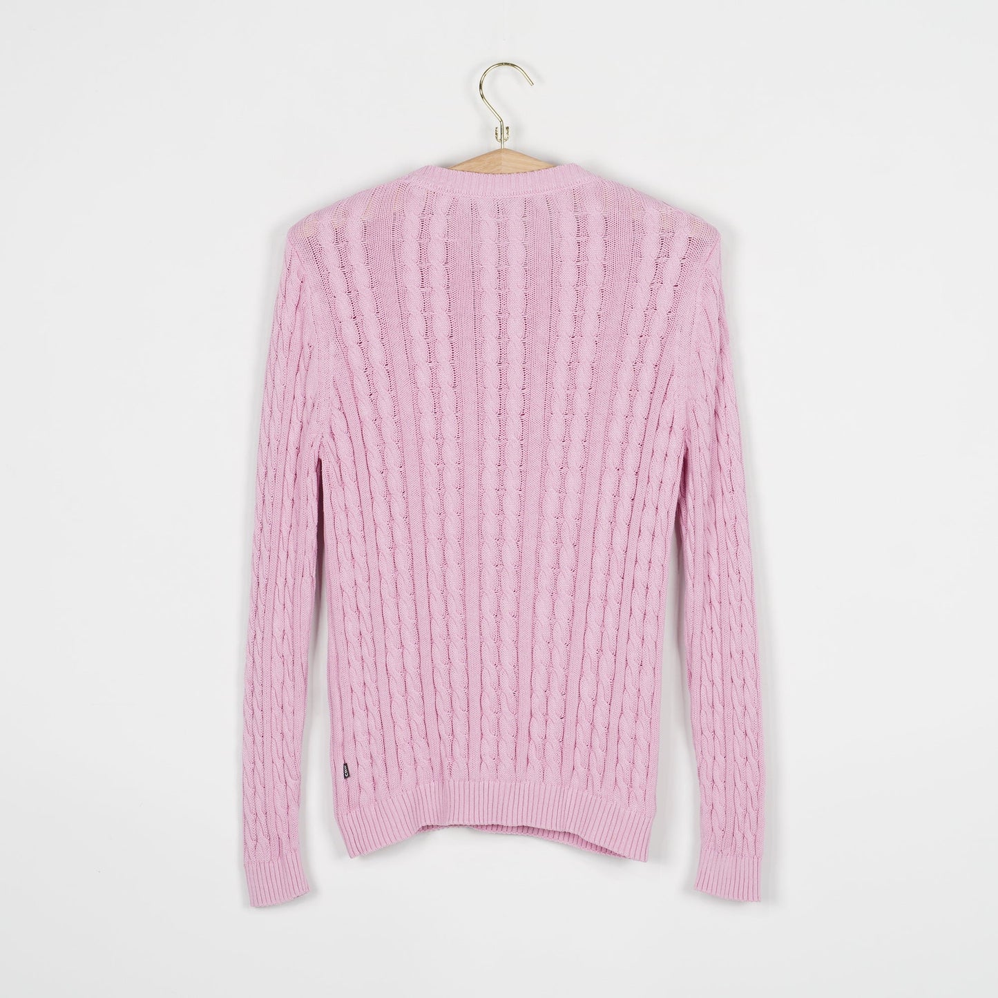 Klassisk stickad tröja i rosa från CRW. Tröjan är i ett använt men bra skick.