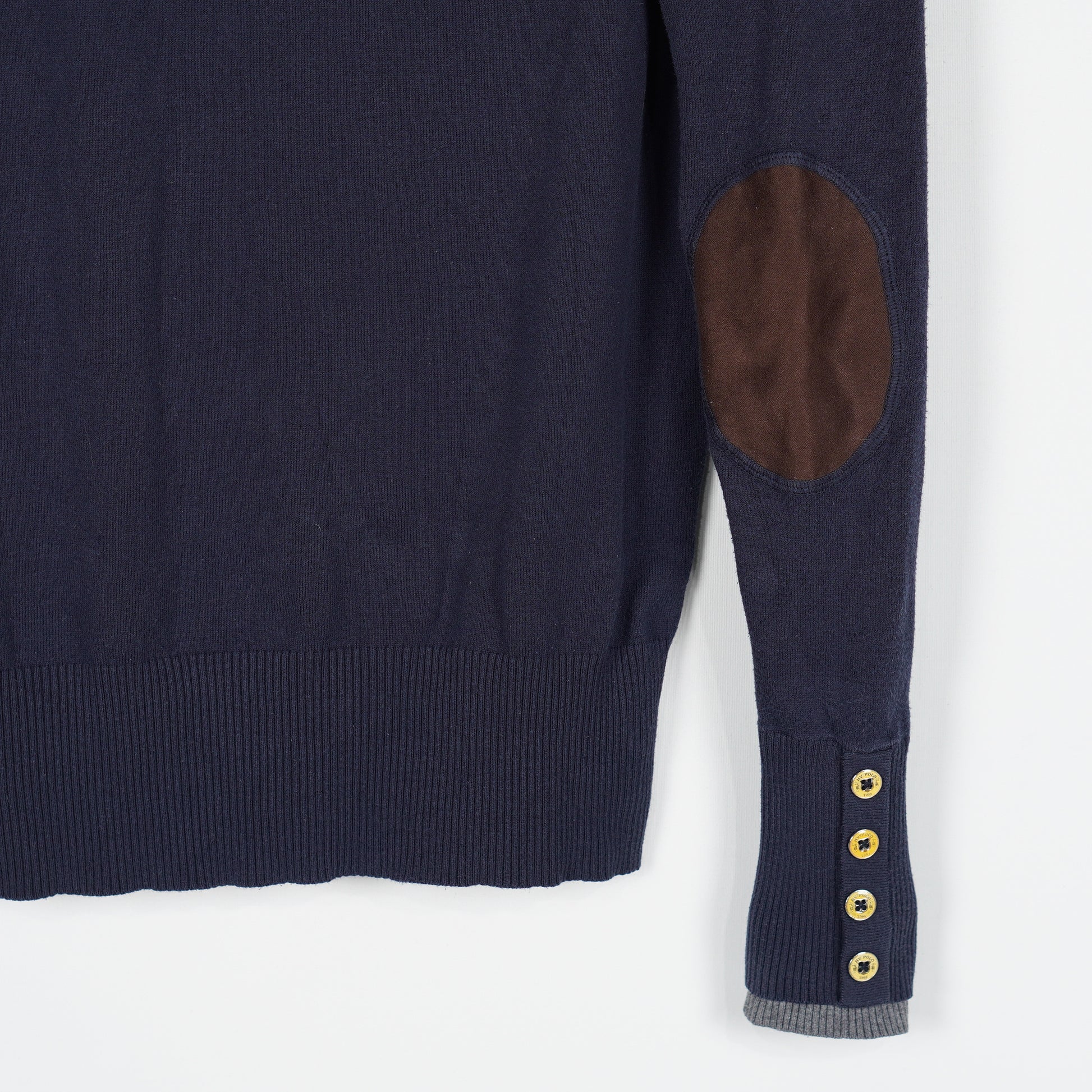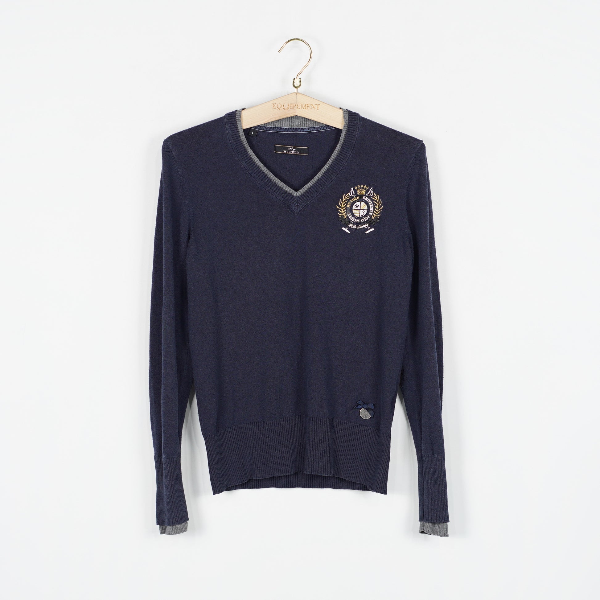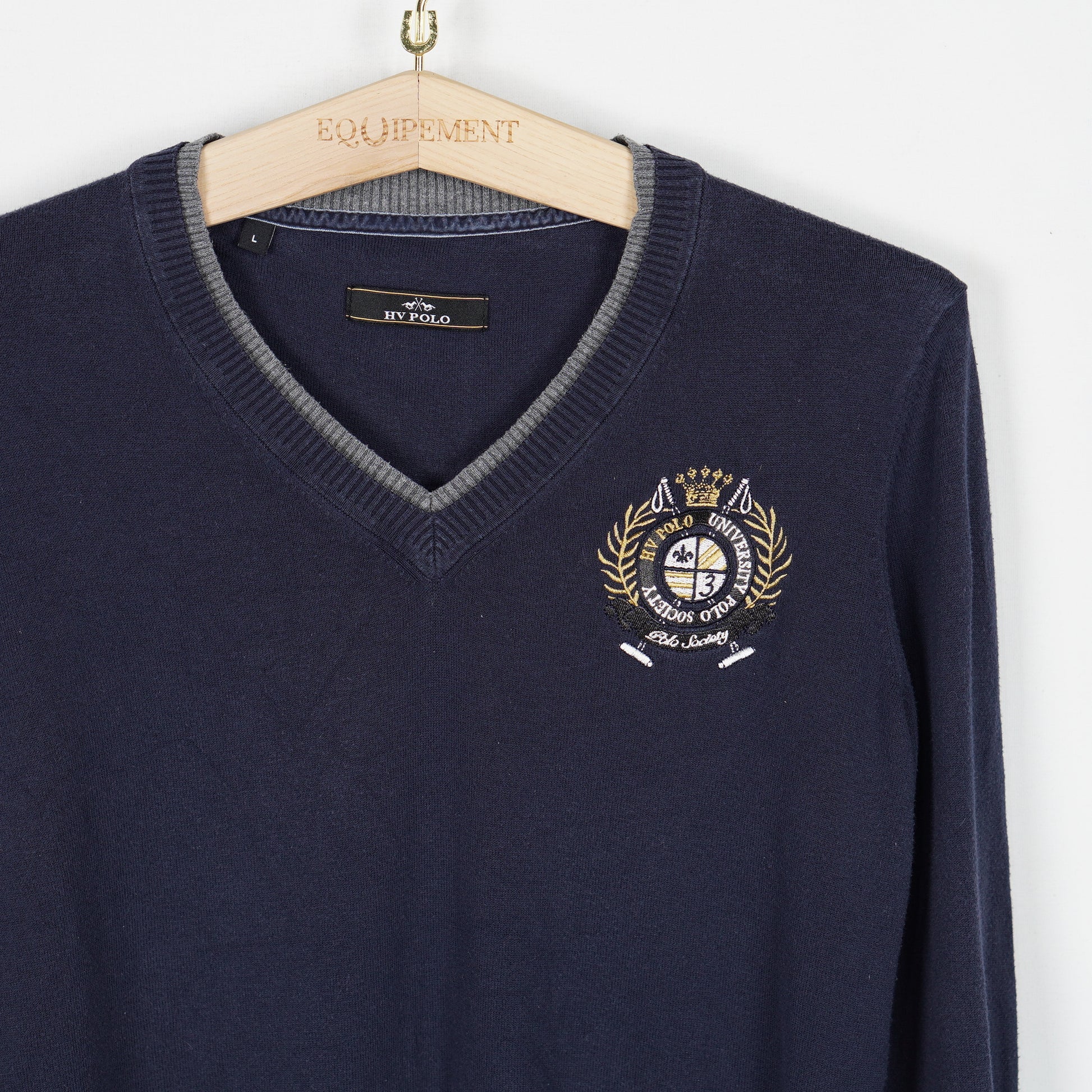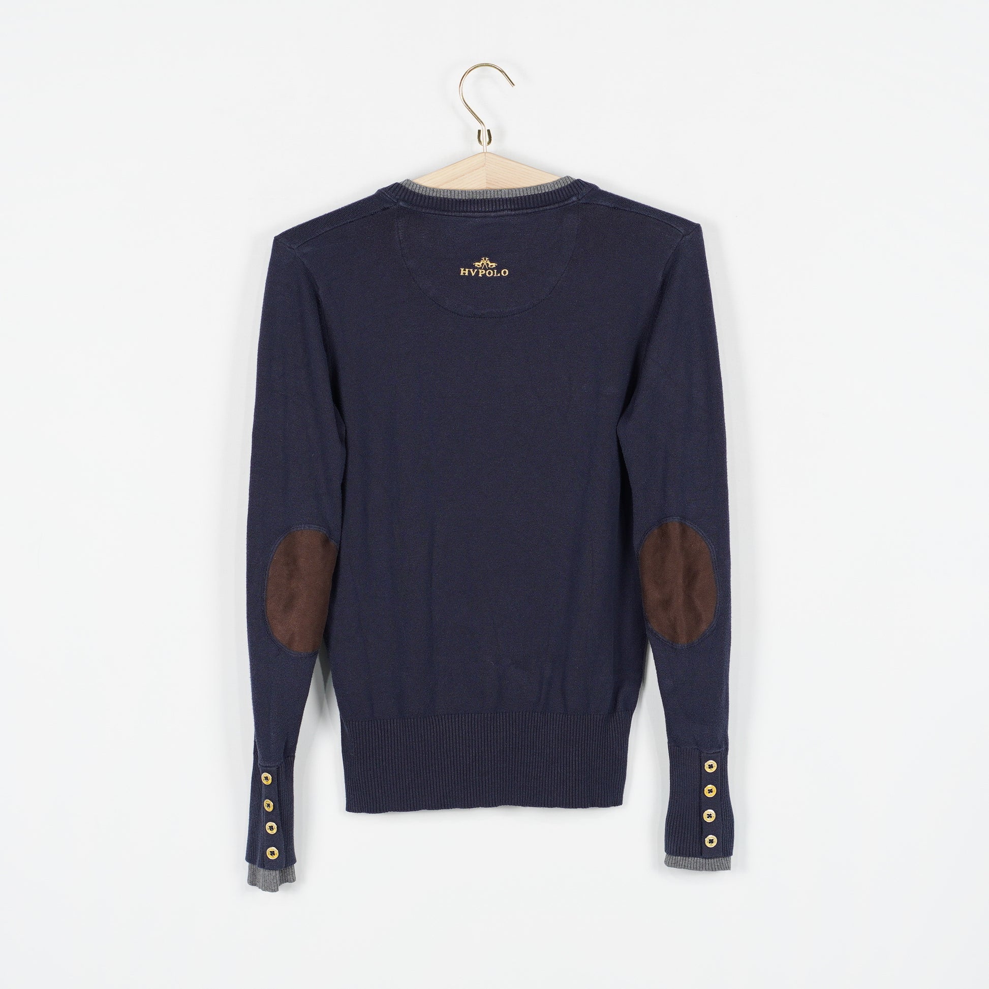 Tunnare stickad tröja med v-ringning från HV Polo och armbågslappar.