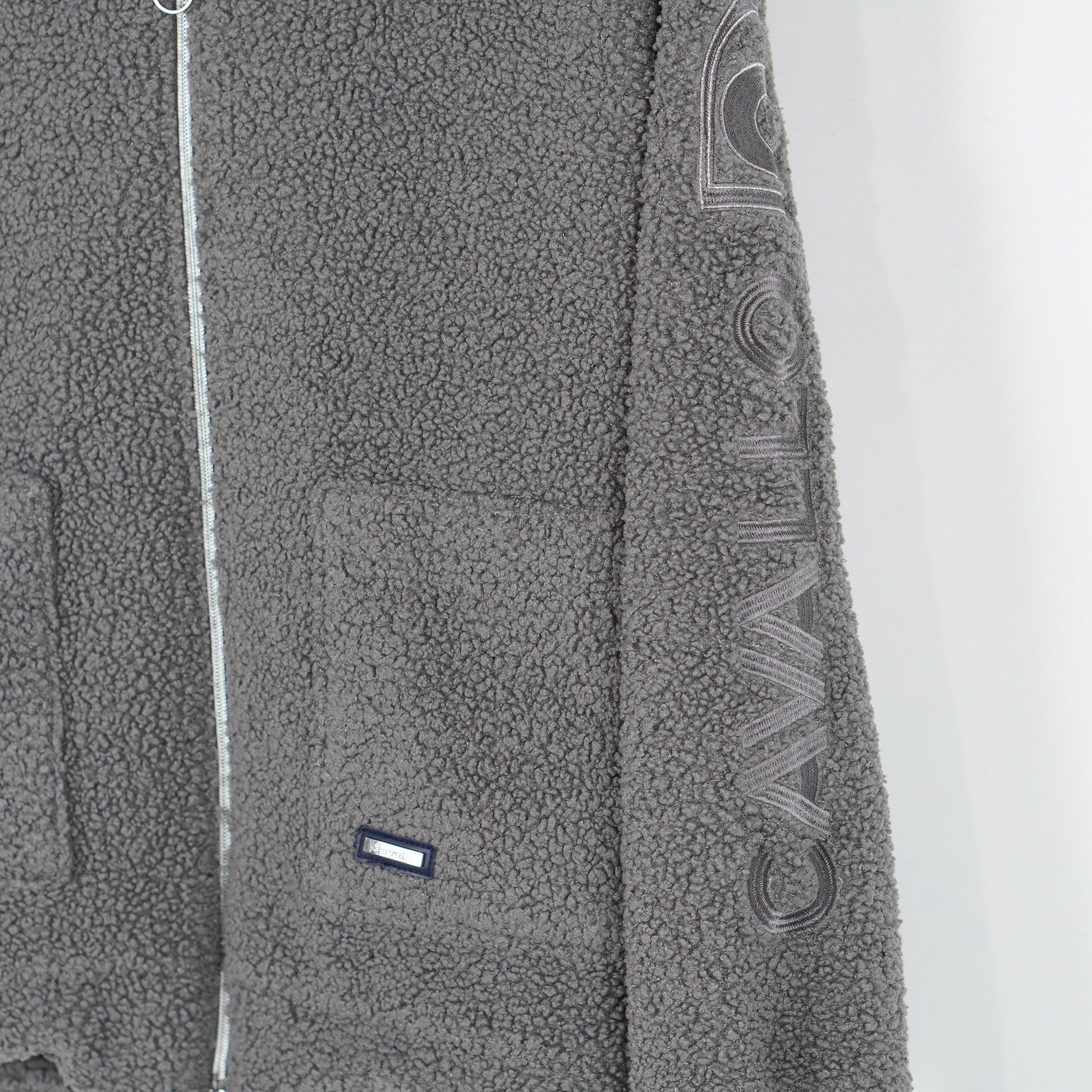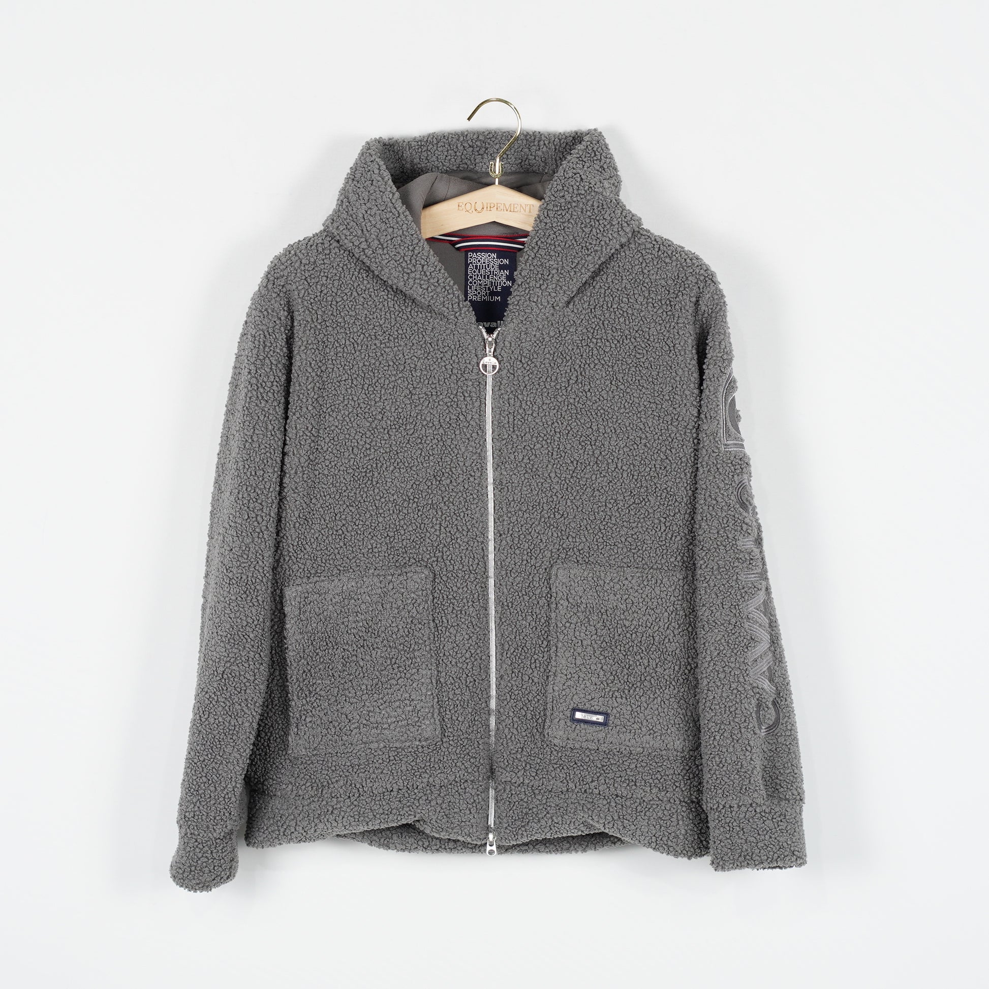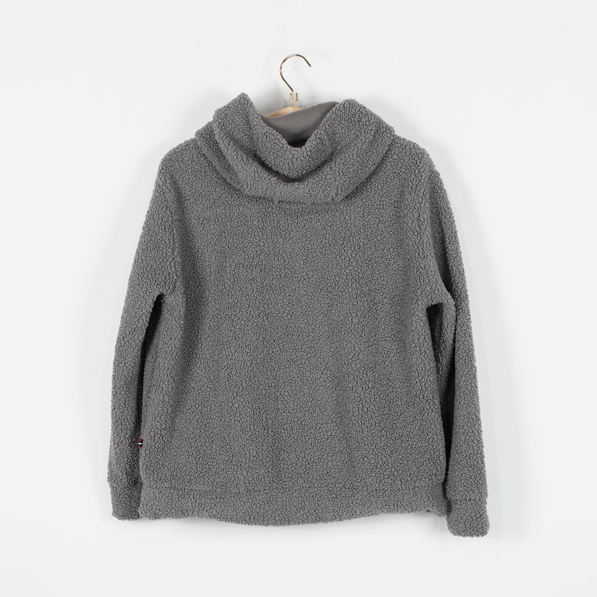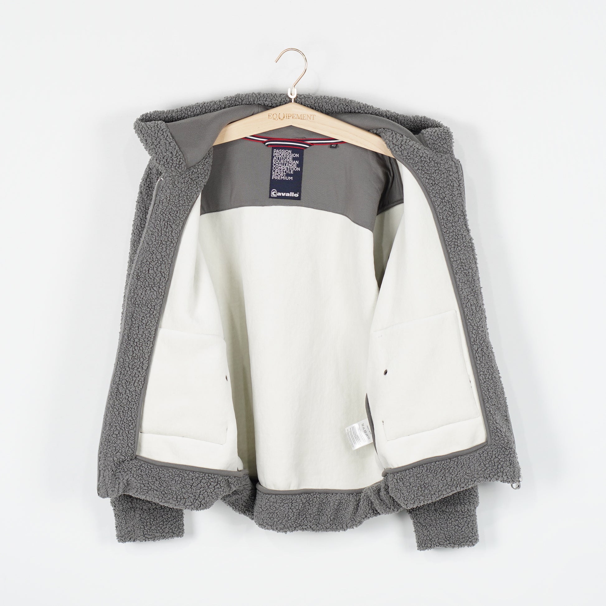 Supermysig teddytröja i grått med fast luva och dragkedja, modell "Bree" från Cavallo.