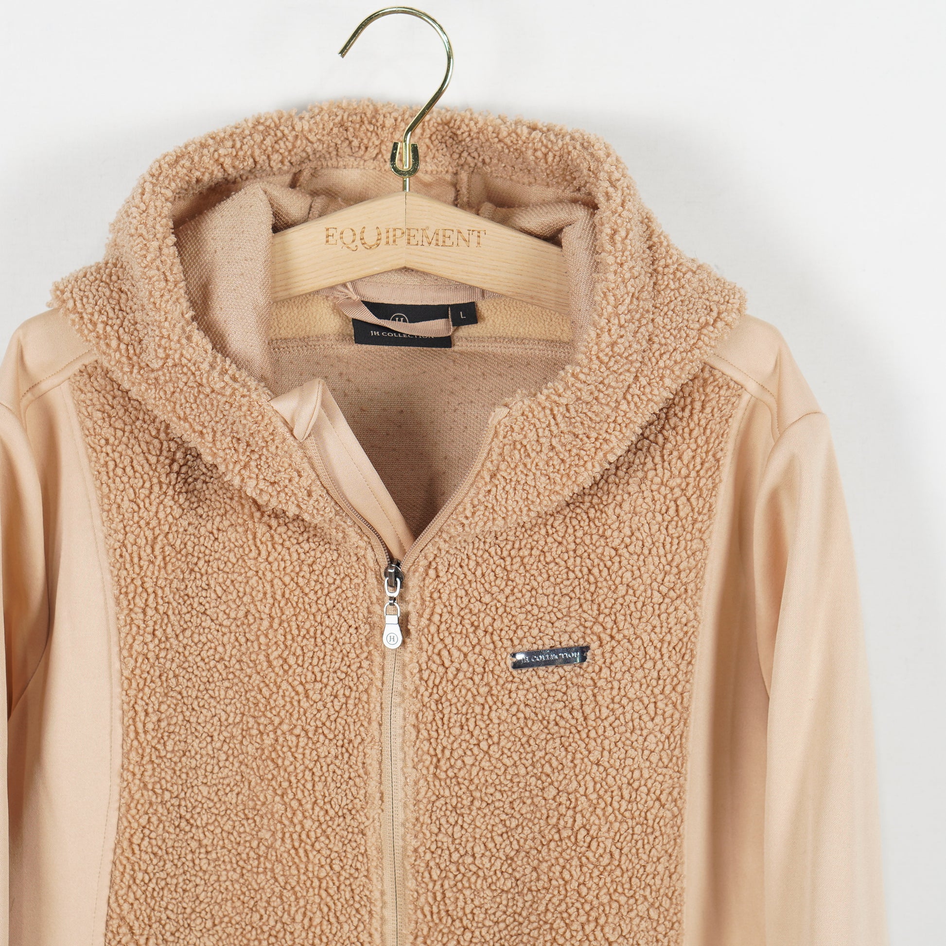 Ljusbrun / beige teddytröja med fast luva och dragkedja från JH Collection.