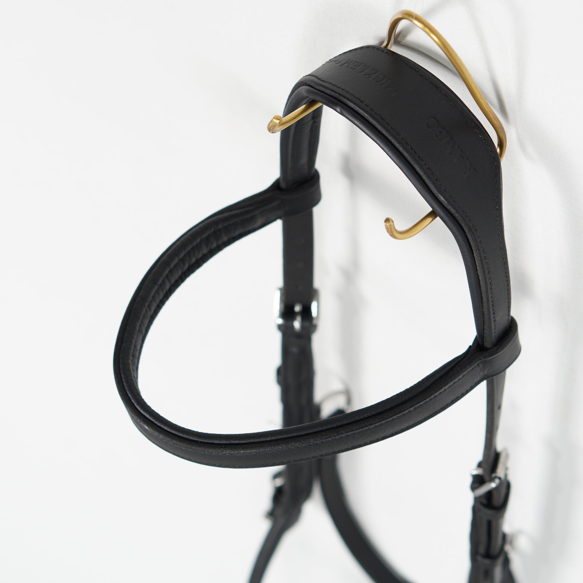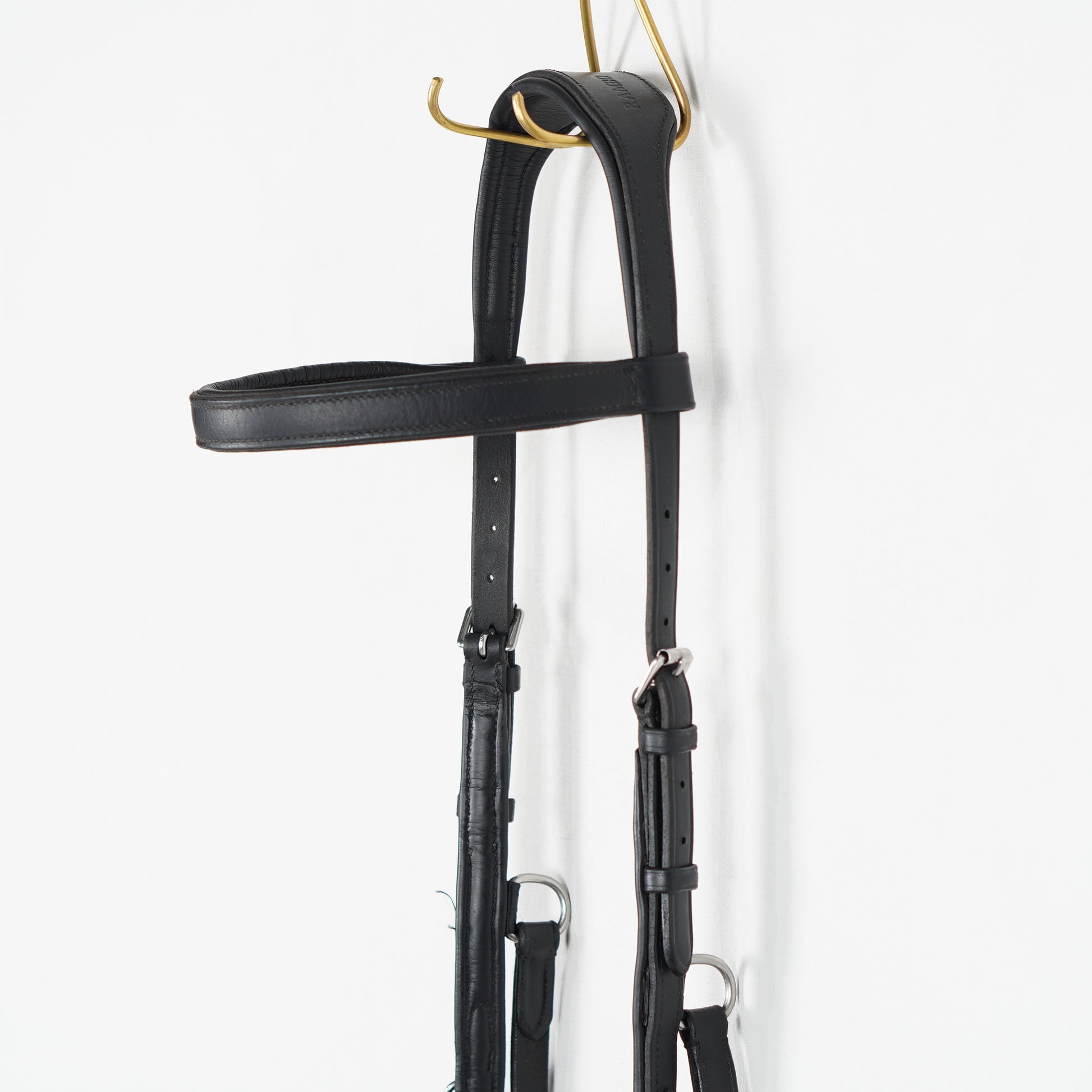 Anatomiskt träns Rambo Micklem Competition i svart läder från Horseware. Tränset är utvecklat för hästens välbefinnande och minska onödigt tryck på känsliga delar.