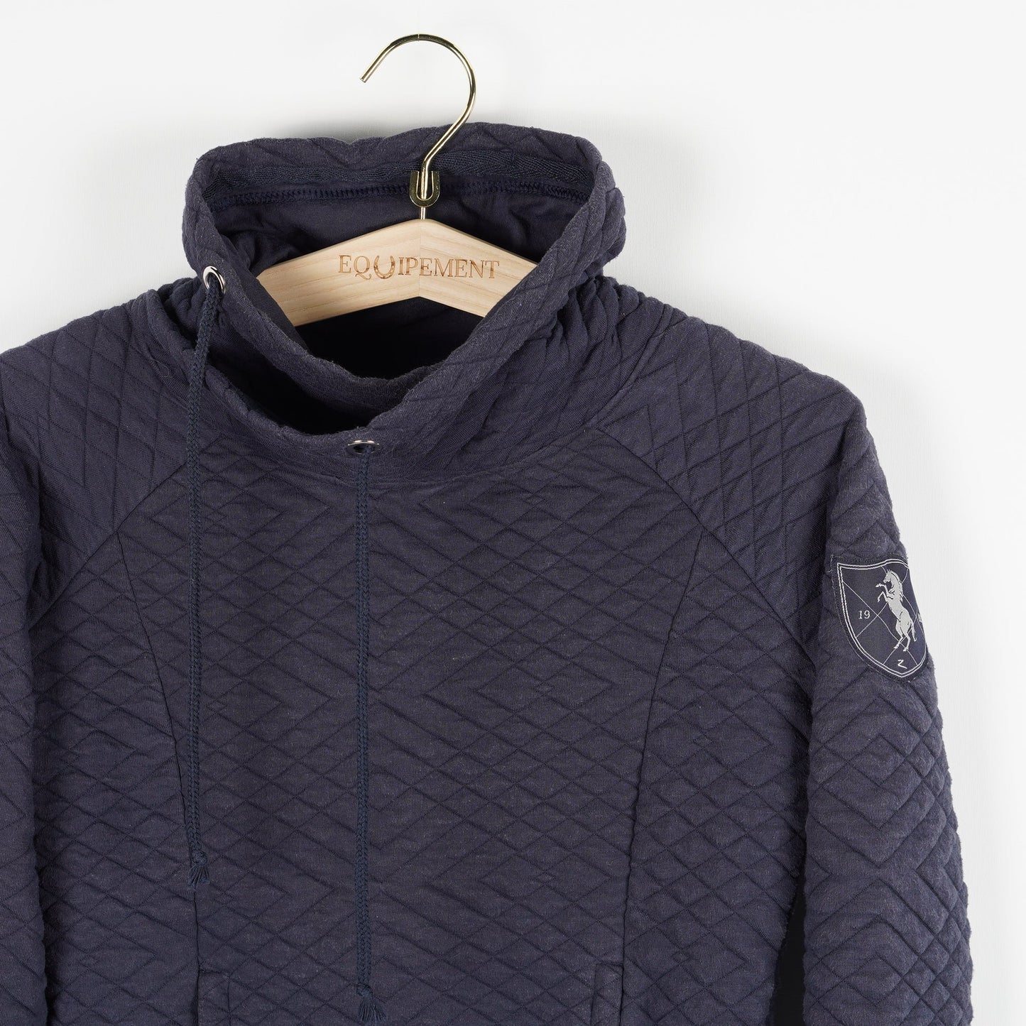 Quiltad tröja från Horze med krage och två fickor fram med dragkedja. Använd men i ett ok skick. Lite noppig i tyget.
