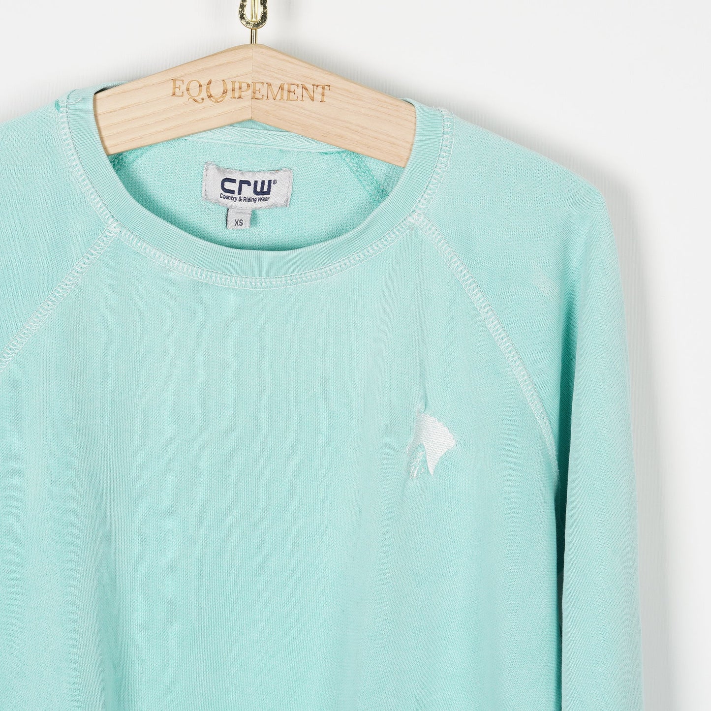 Ljusblå/turkos tröja från CRW. Tröjan är i använt skick, det finns en bråkig fläck framtill.