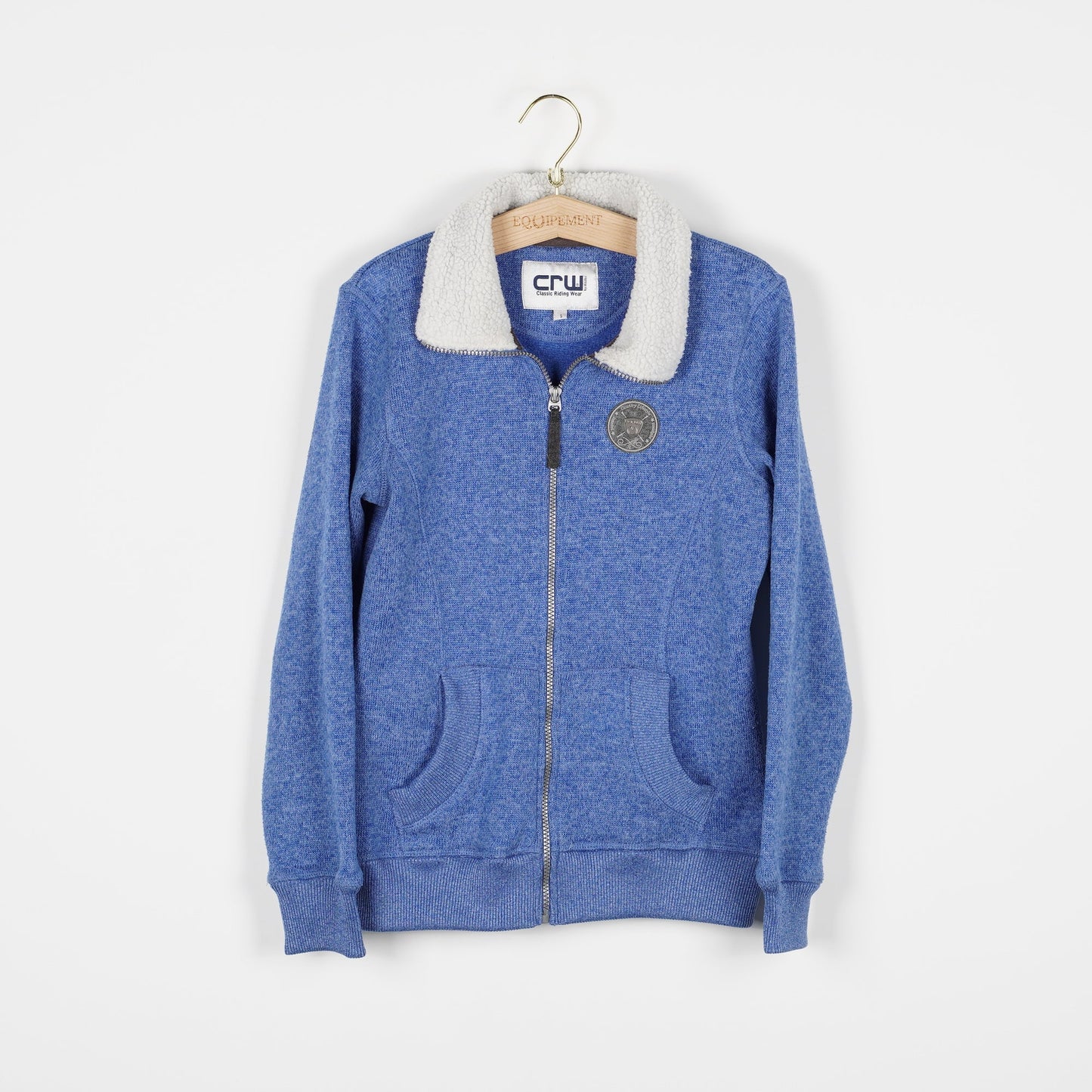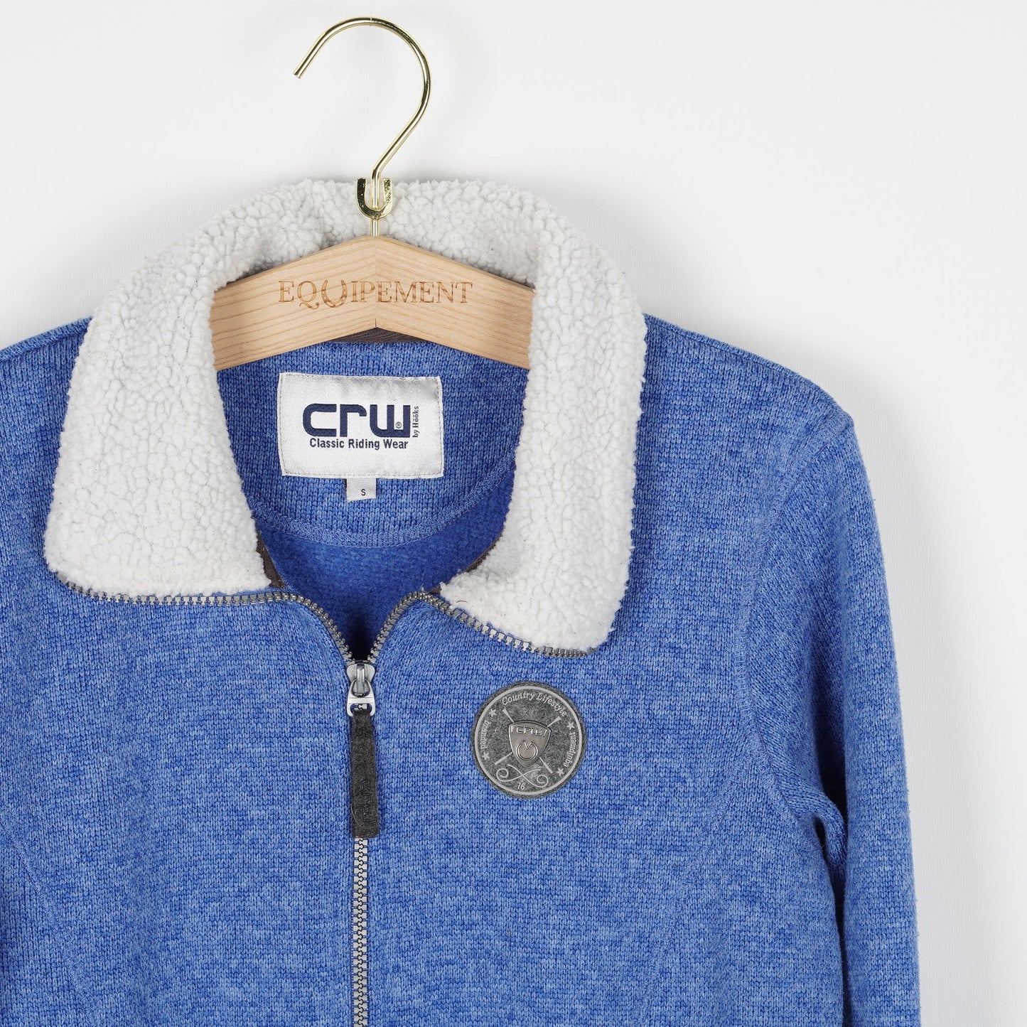 Blå tröja från CRW med teddy på insidan av kragen. Lite noppig vid ärmsluten, i övrigt ok skick.