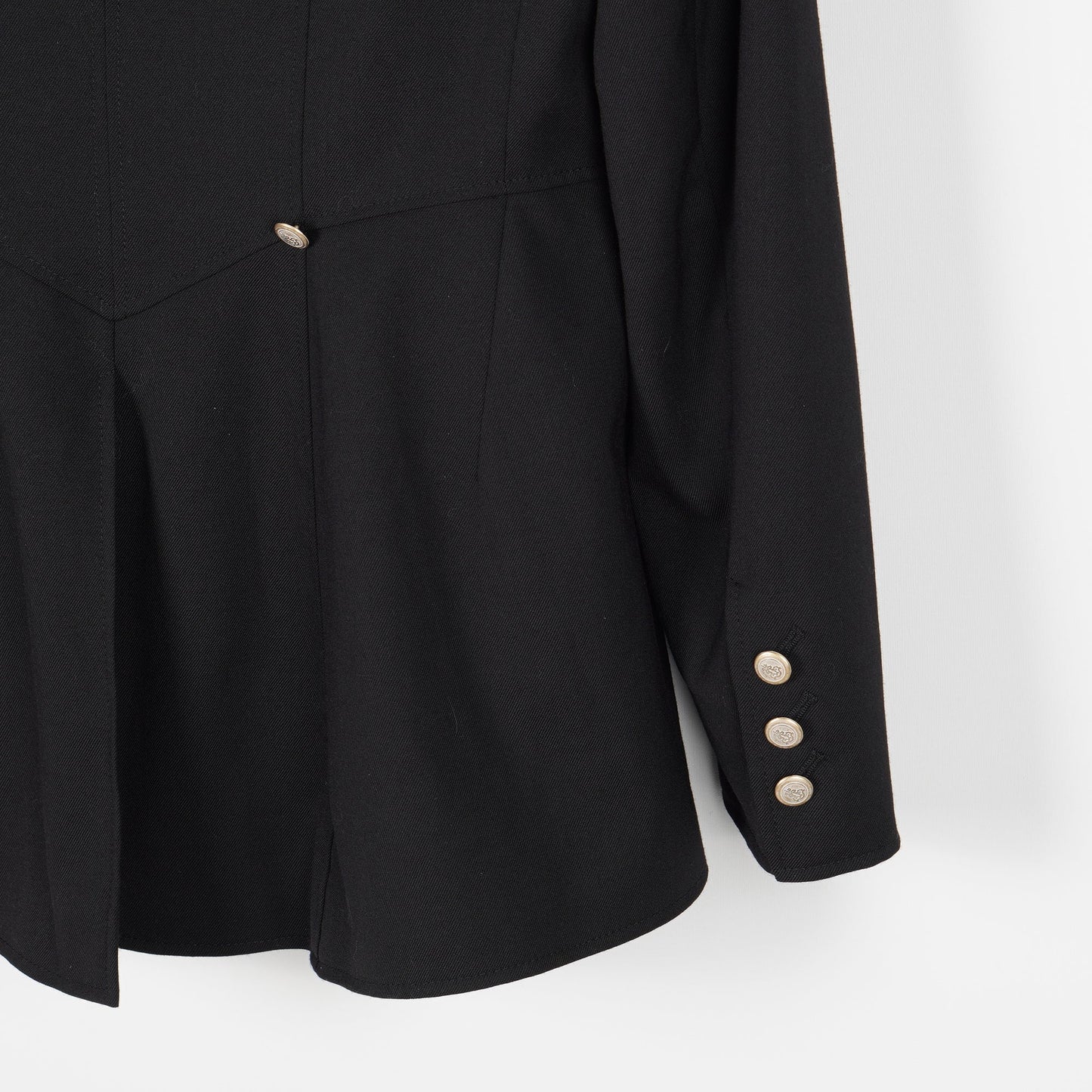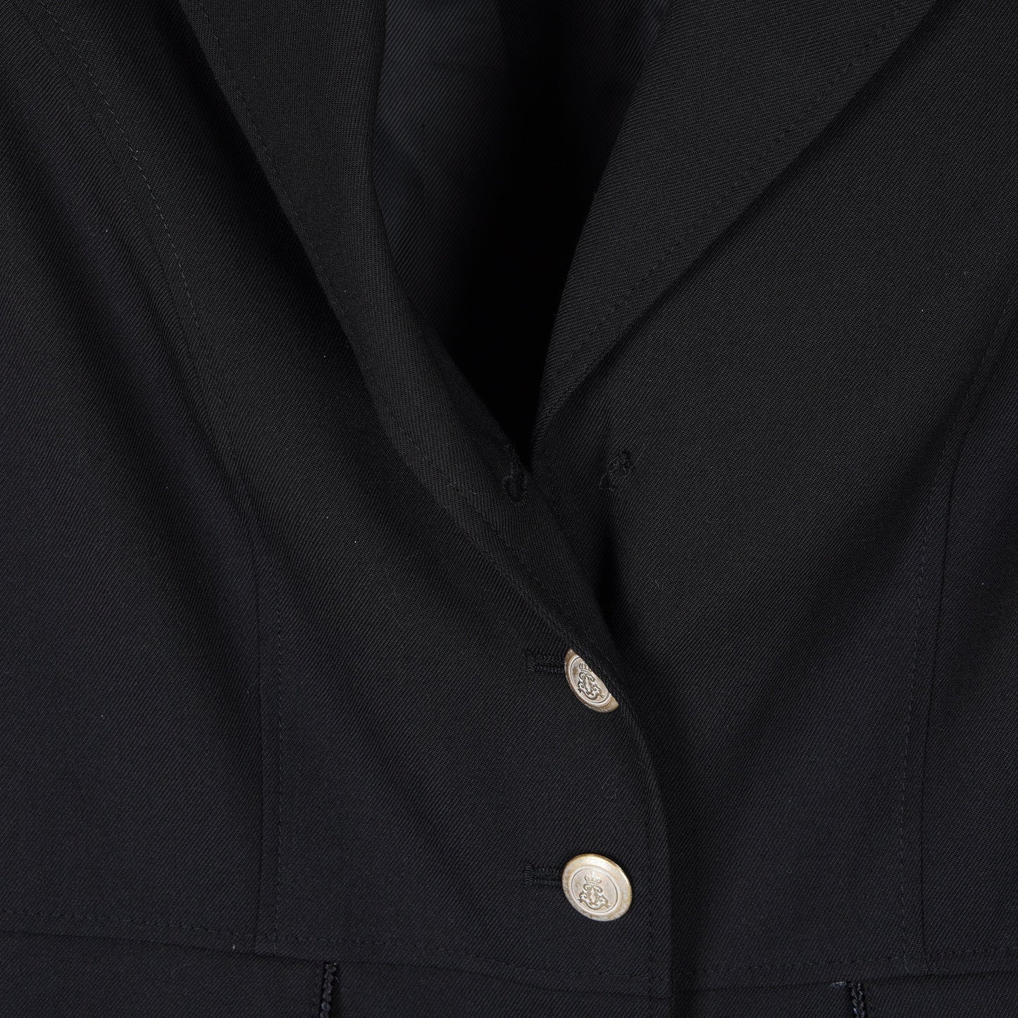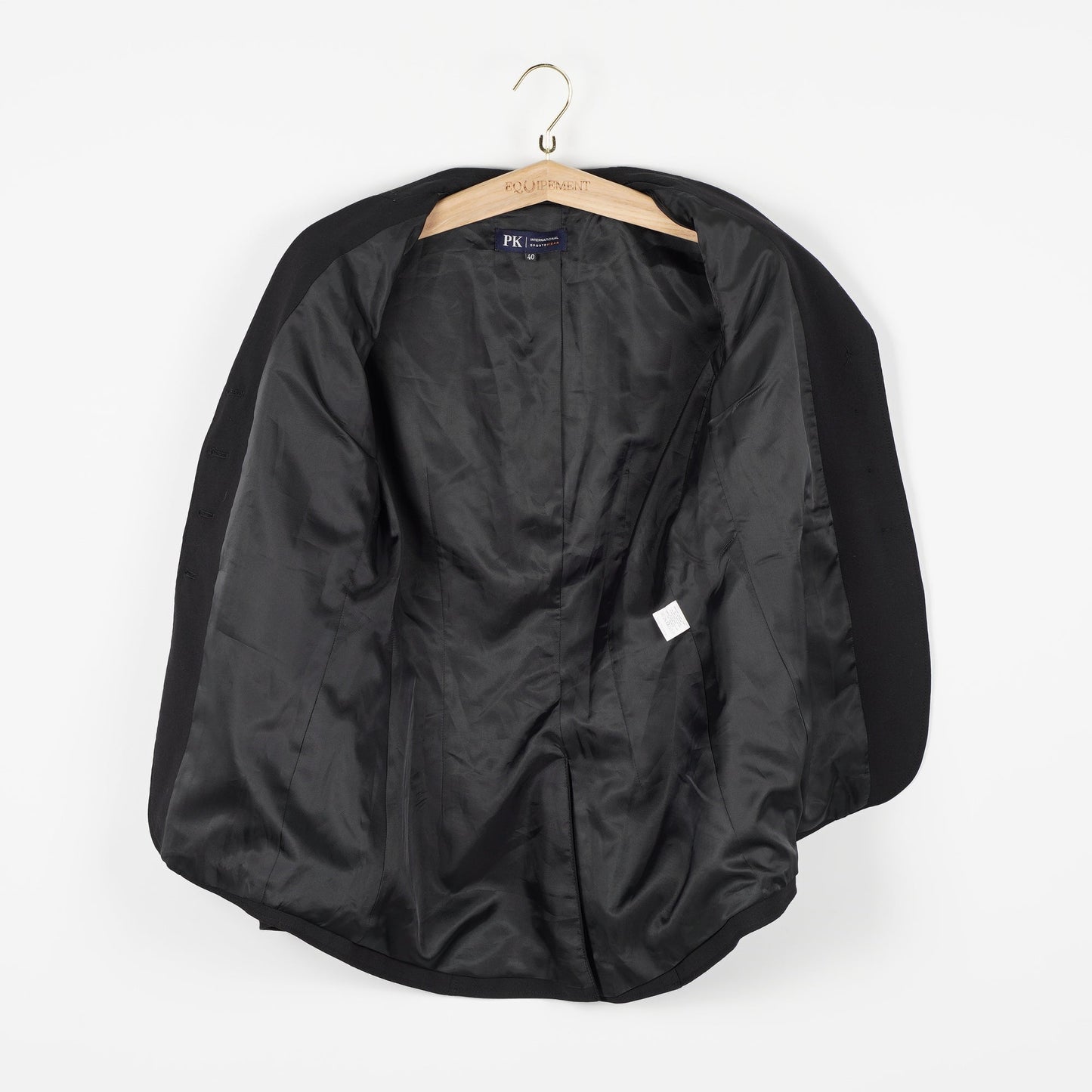 Svart tävlingskavaj från PK med knappar fram och fin detalj på kanten av fickorna och kragen. Tyvärr saknas den 4e knappen, se bild.
