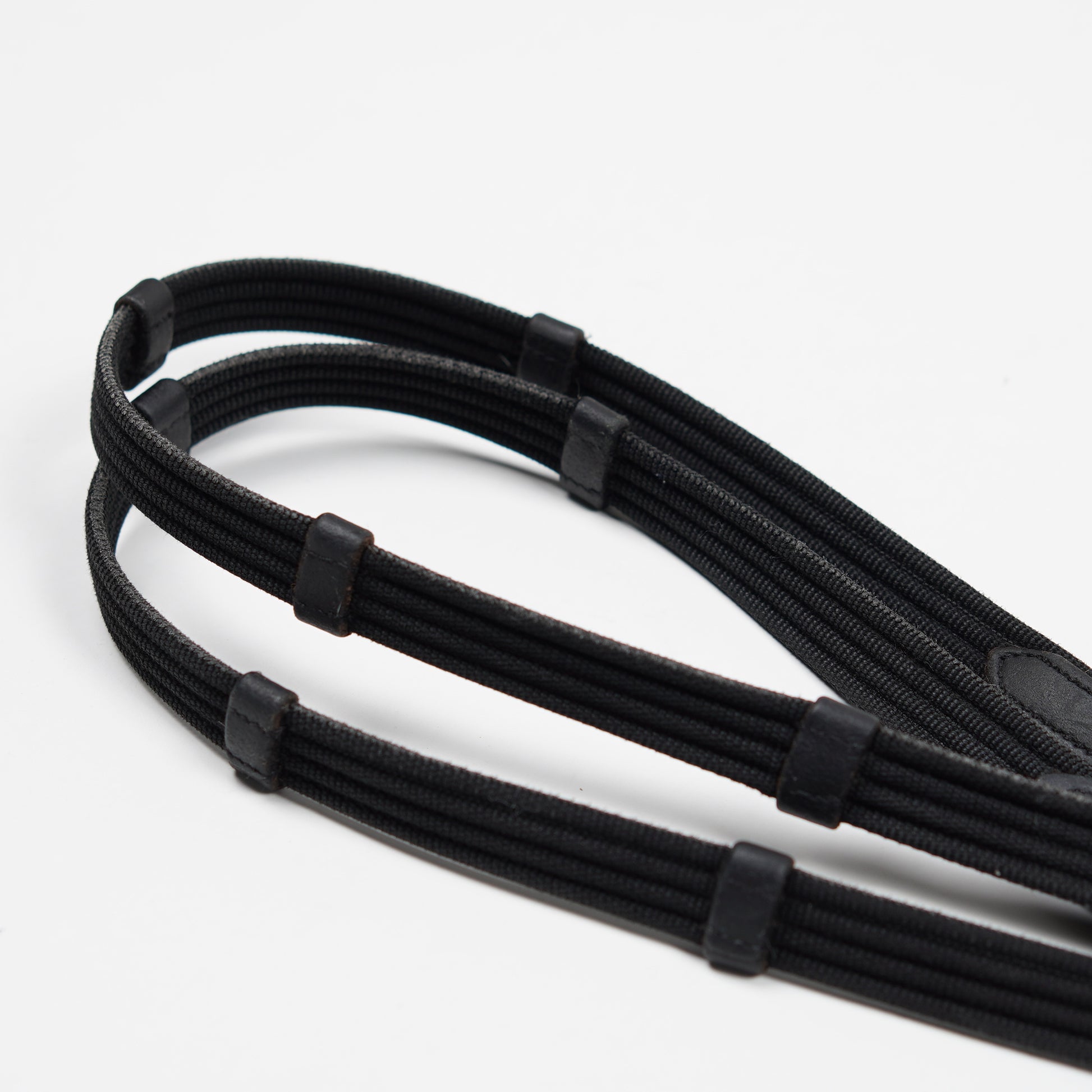 Klassisk vävribbstygel med läder i svart från Emporio Equipe.