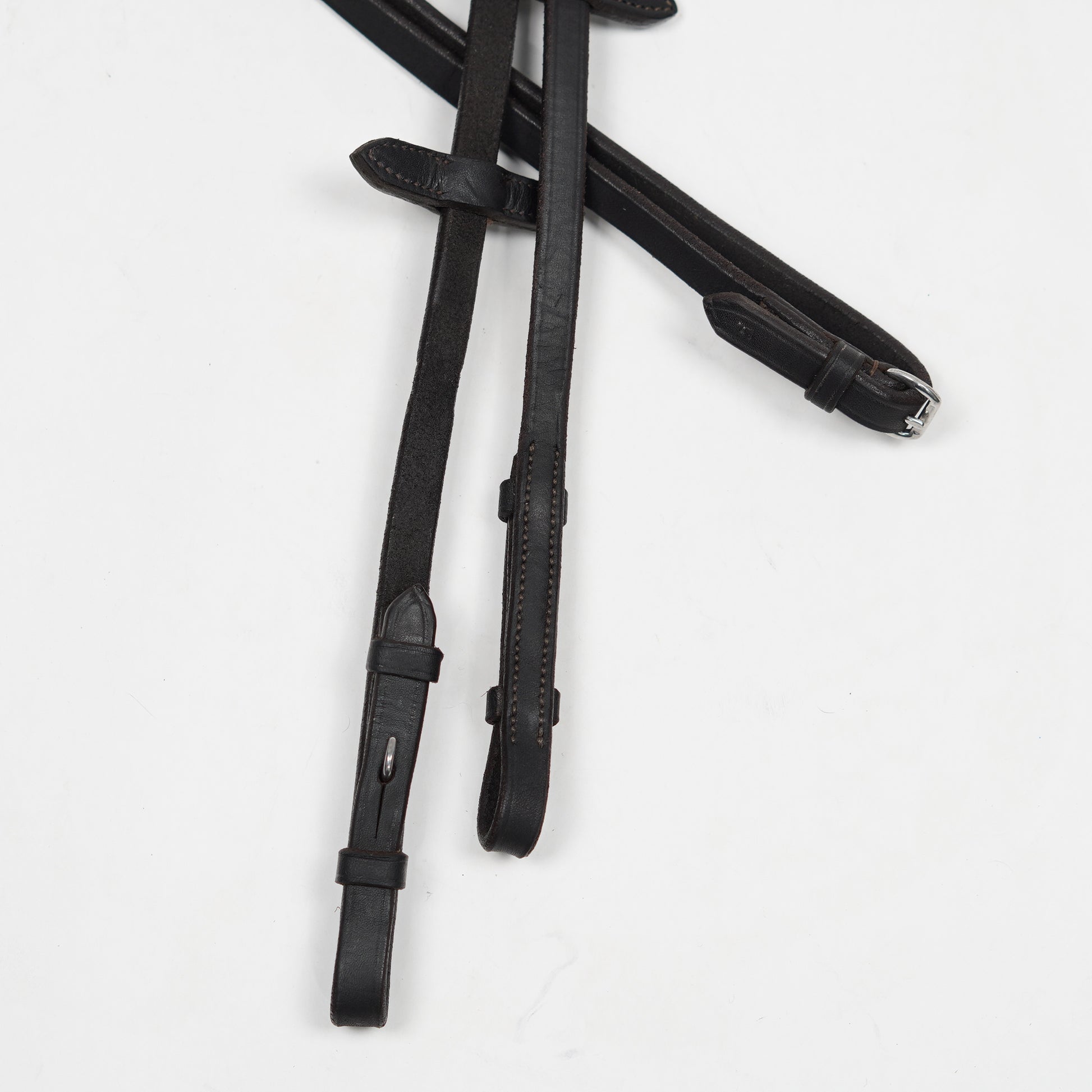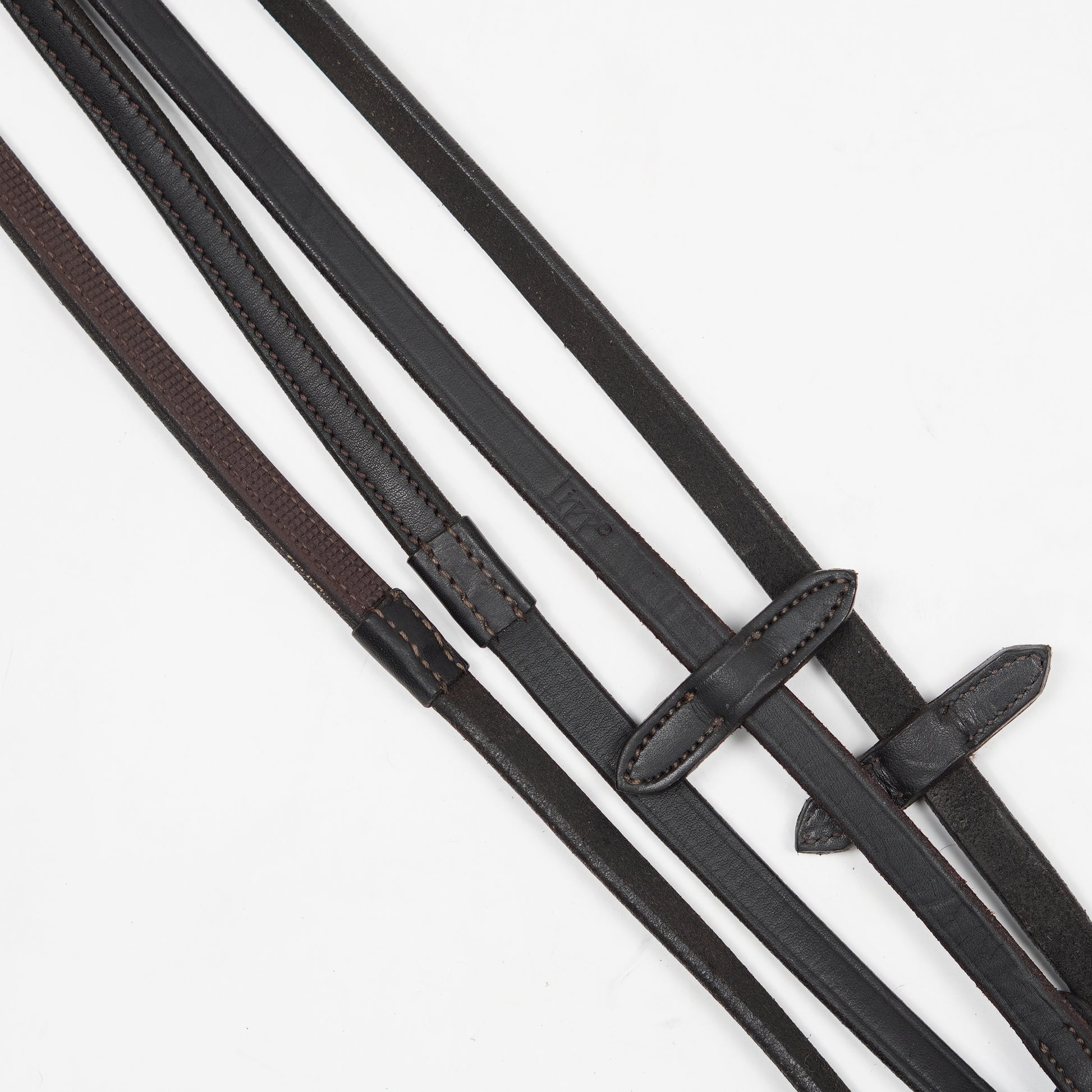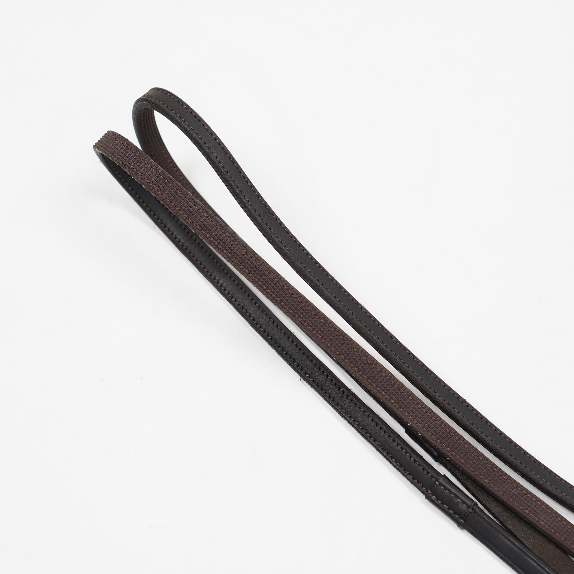 Smal lädertygel i brunt med en insida av gummi från Lippo.