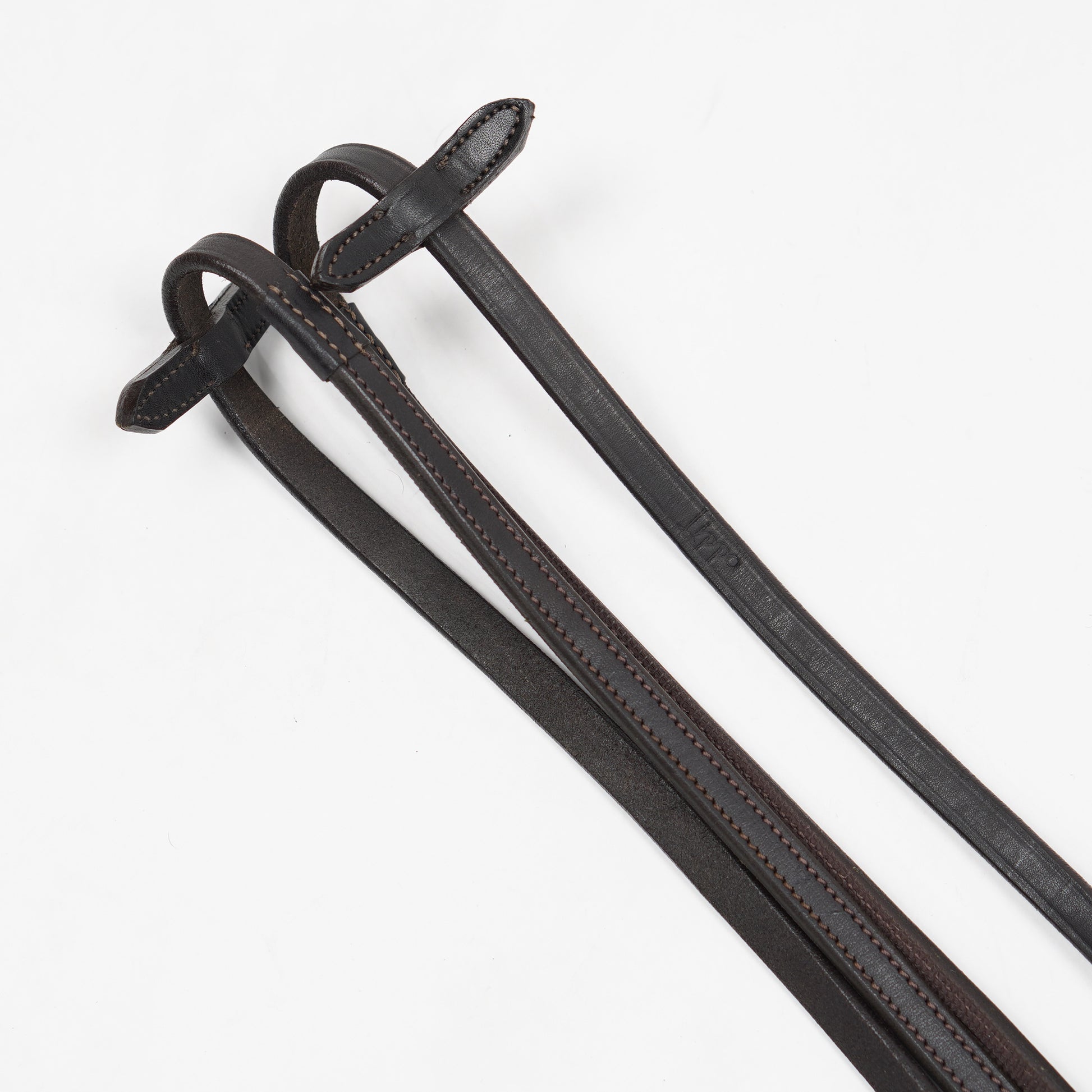Smal lädertygel i brunt med en insida av gummi från Lippo.