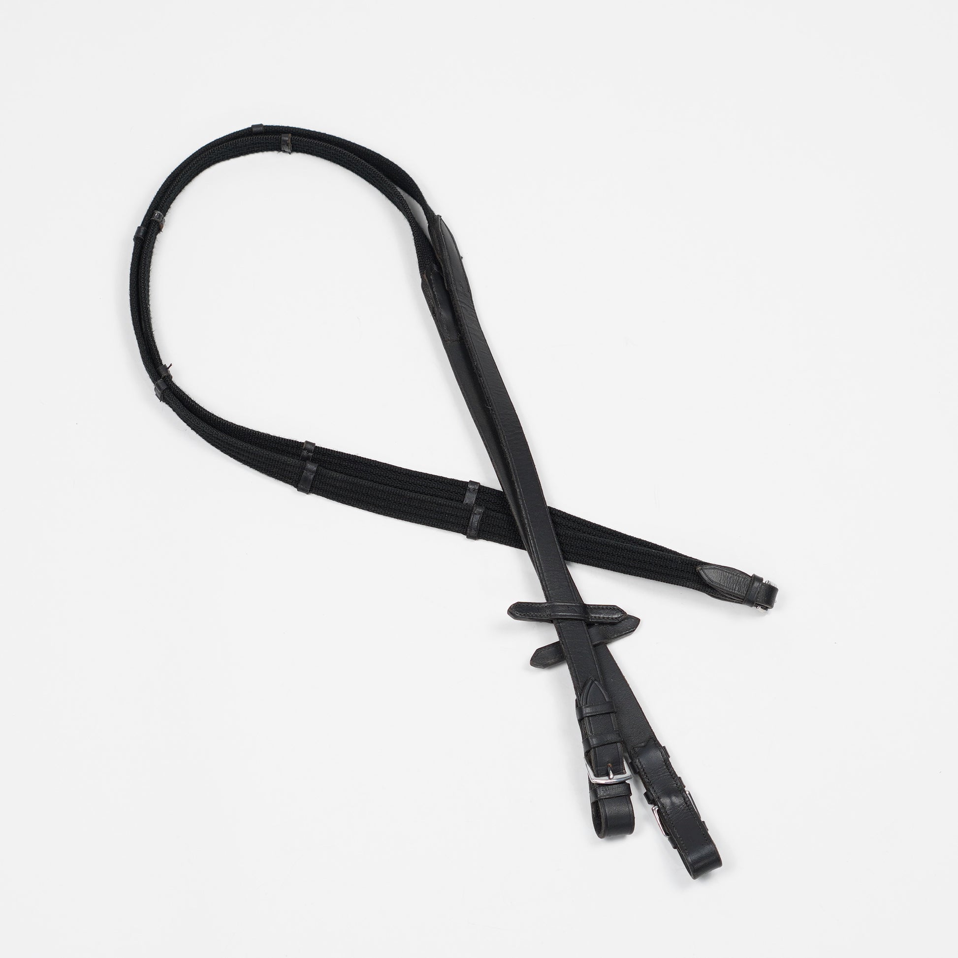 Svarta tygel i extra bred vävribb och läder från okänd tillverkare.