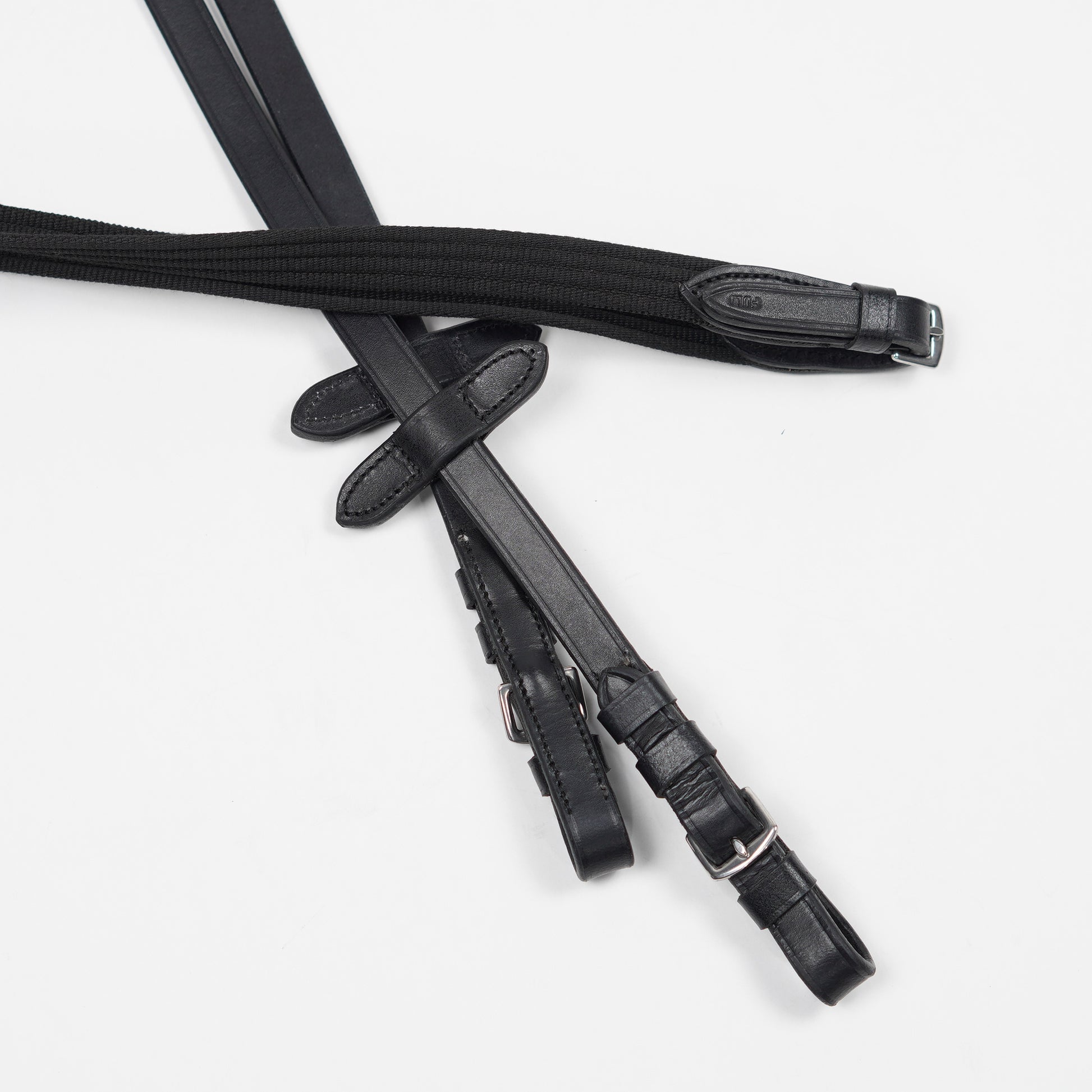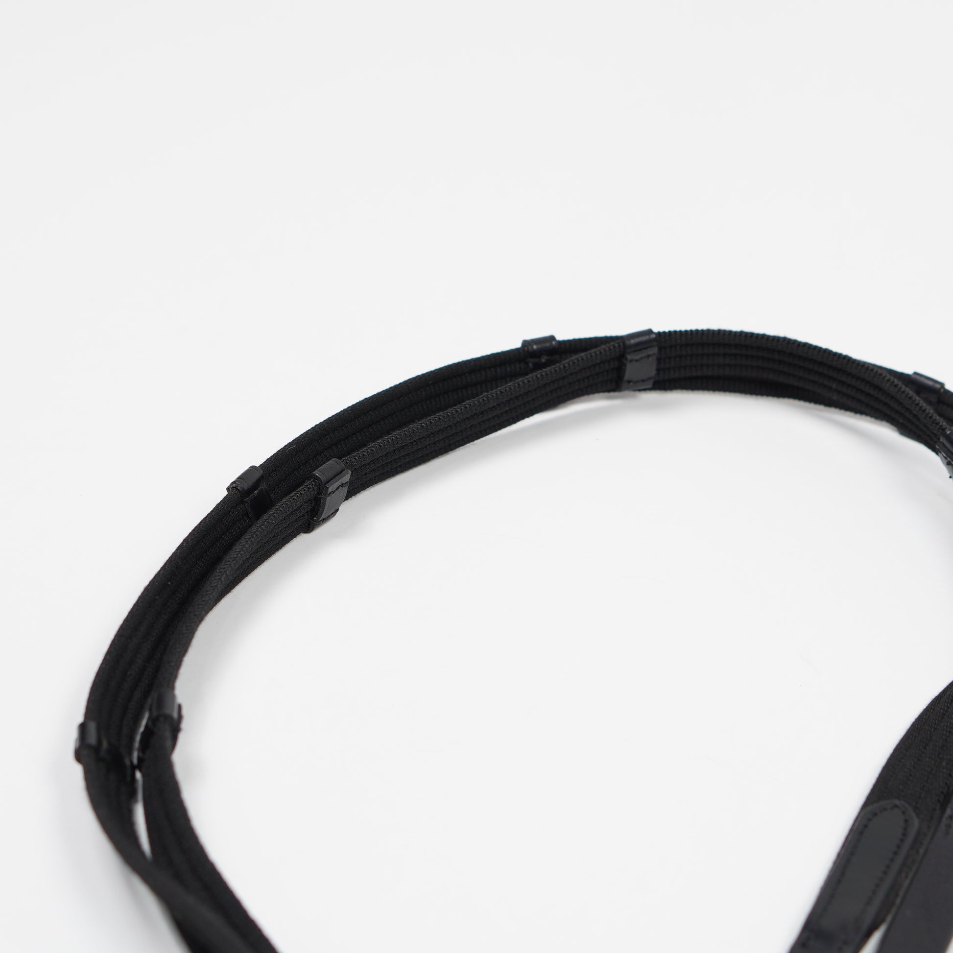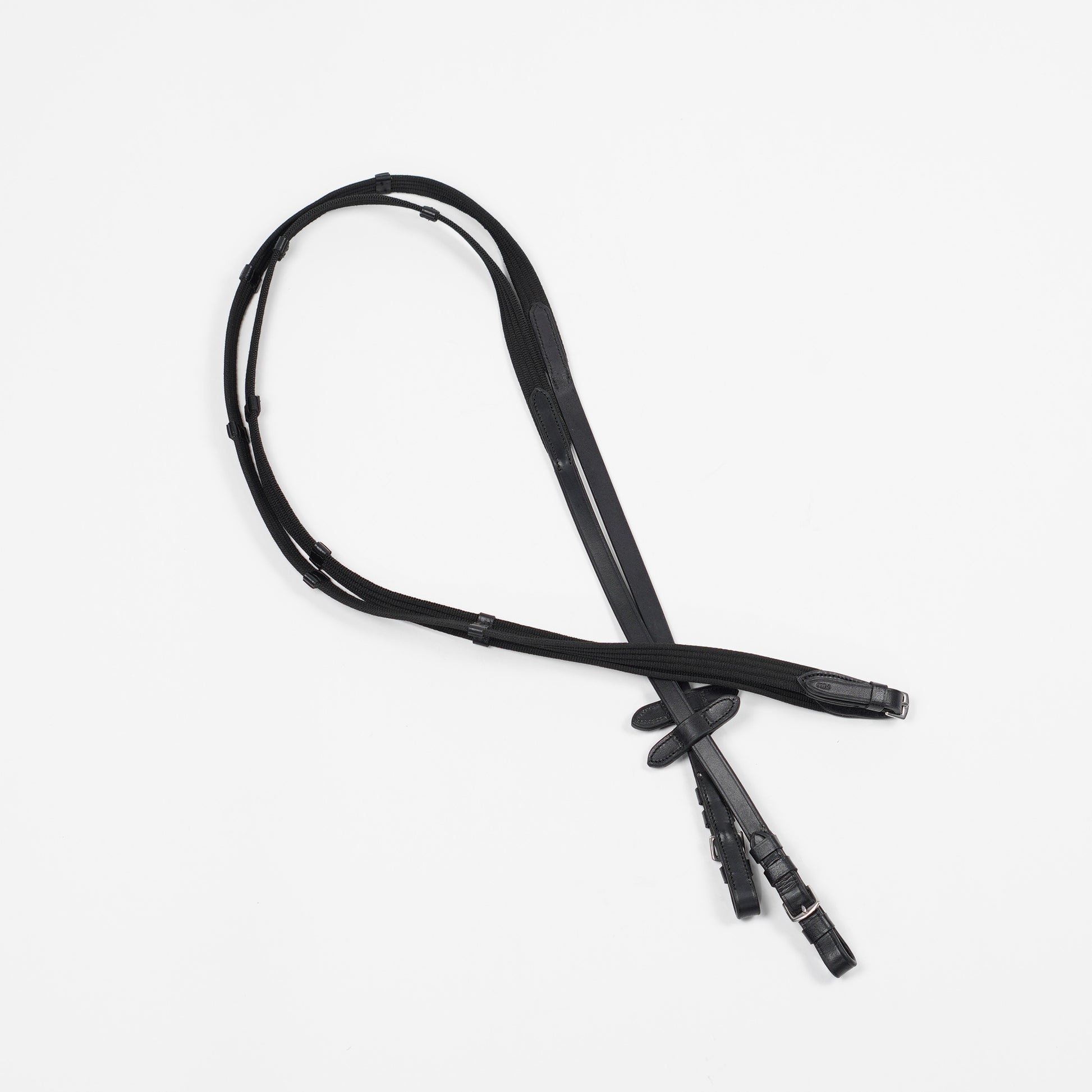 Svart vävribbstygel från Fairfield med läderändar och martingalstopp.