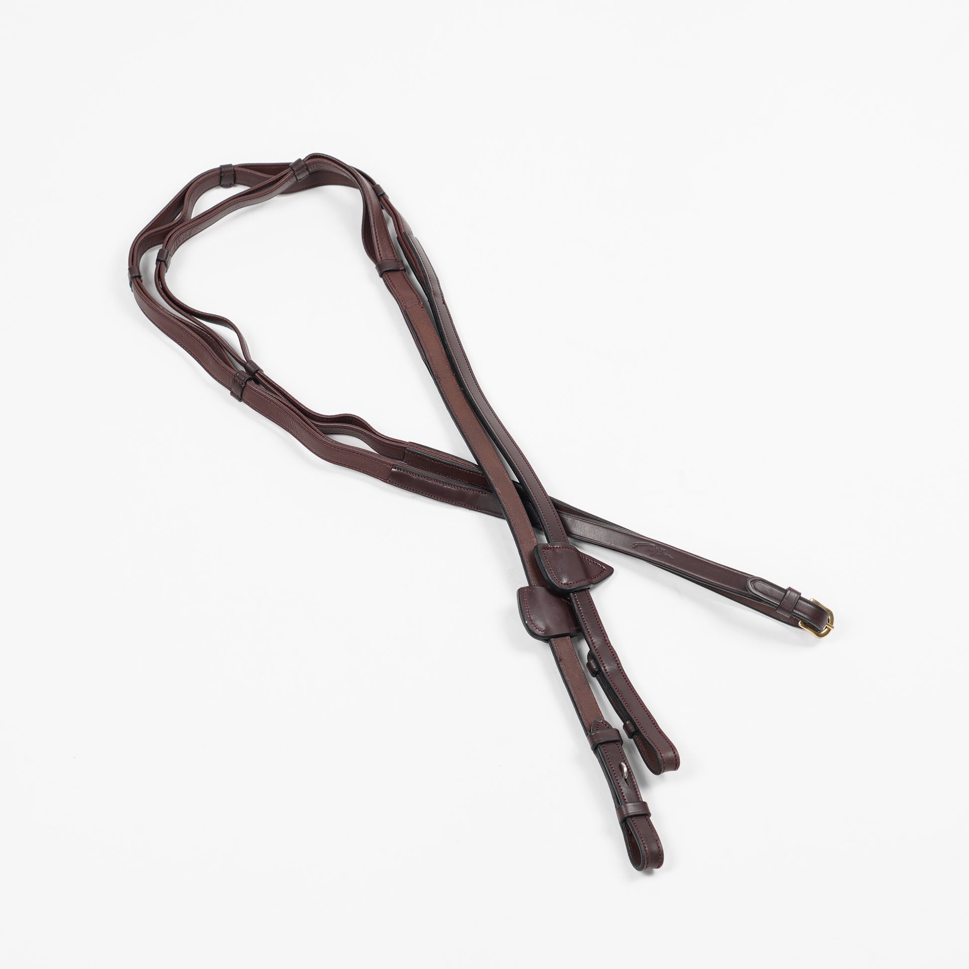 Bruna lädertyglar från Dyon med fyra handtag på varje sida.