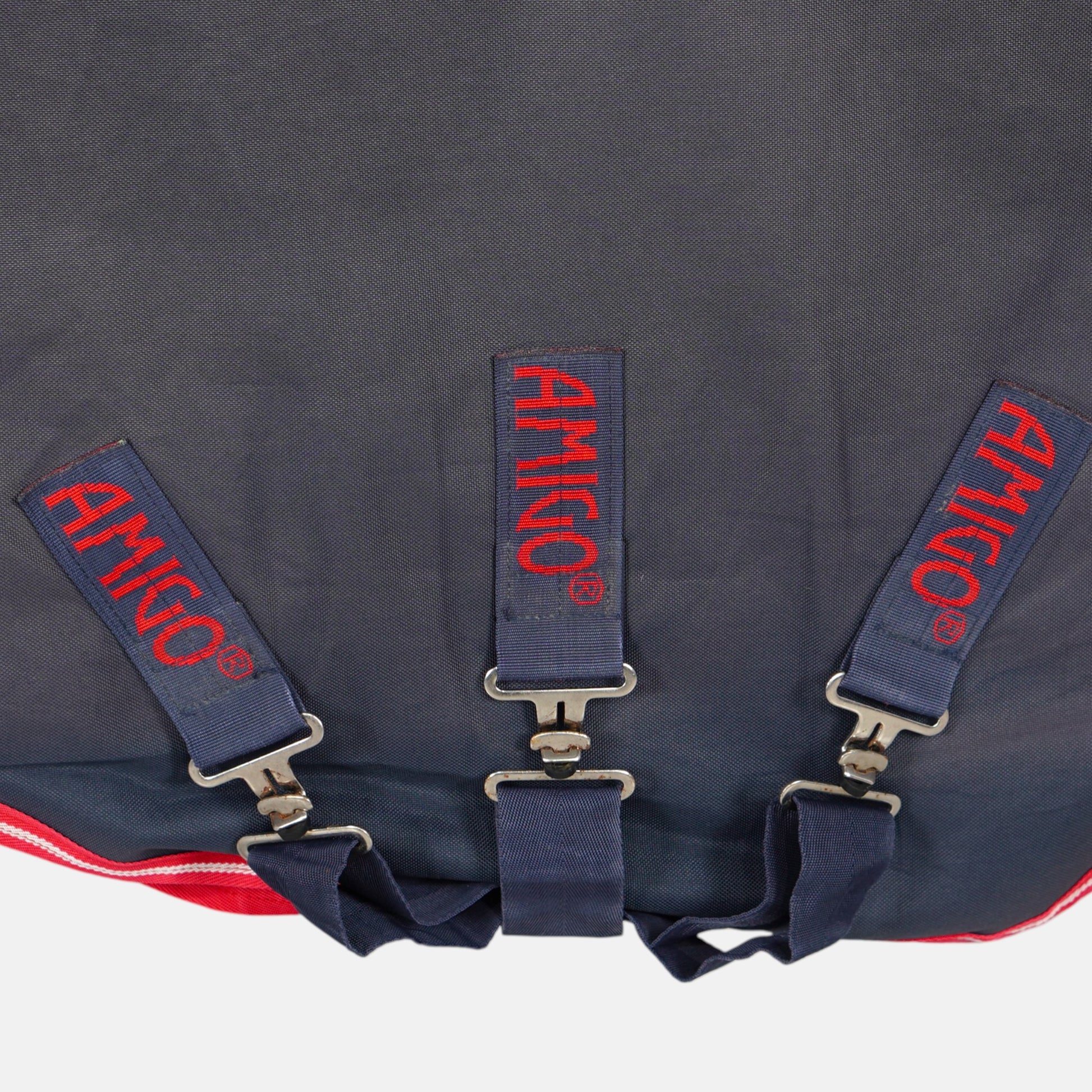Utetäcke Amigo Bravo med 250g fyllning, avtagbar hals (150g) och V-front från Horseware. Innerfodret bak vid svanslappen är nött och har två hål, se bild.