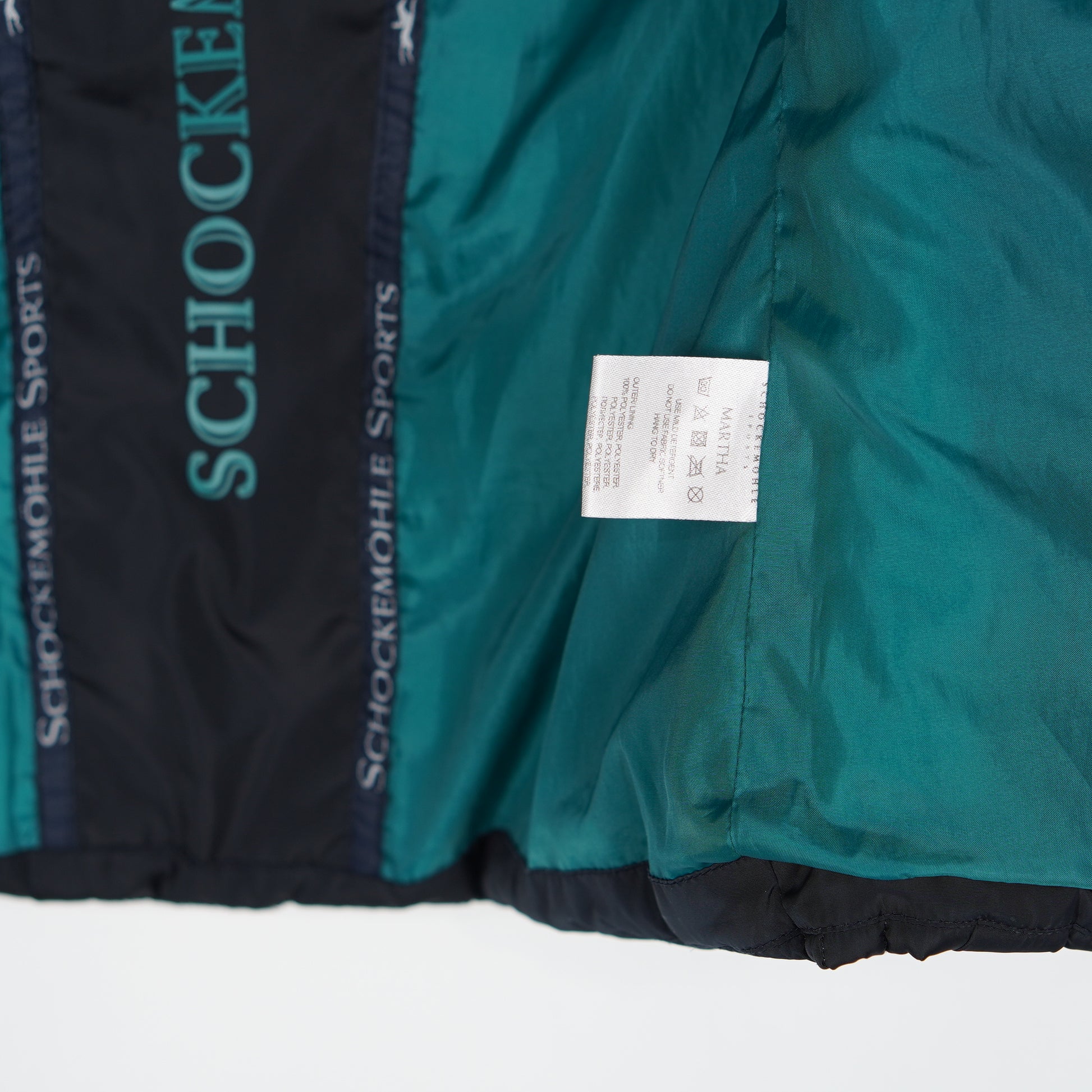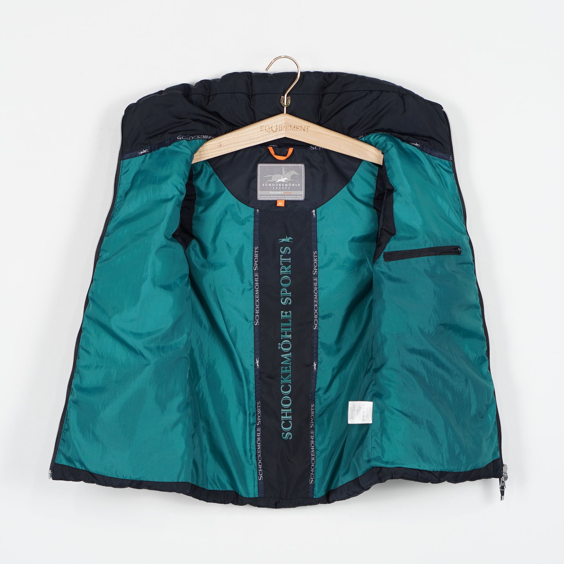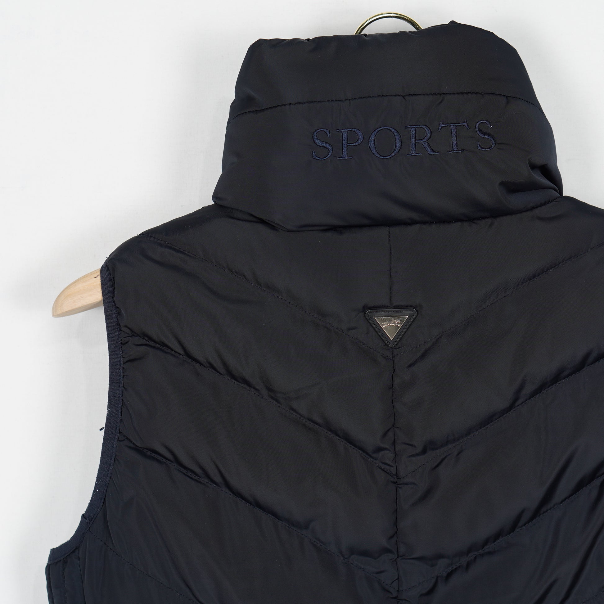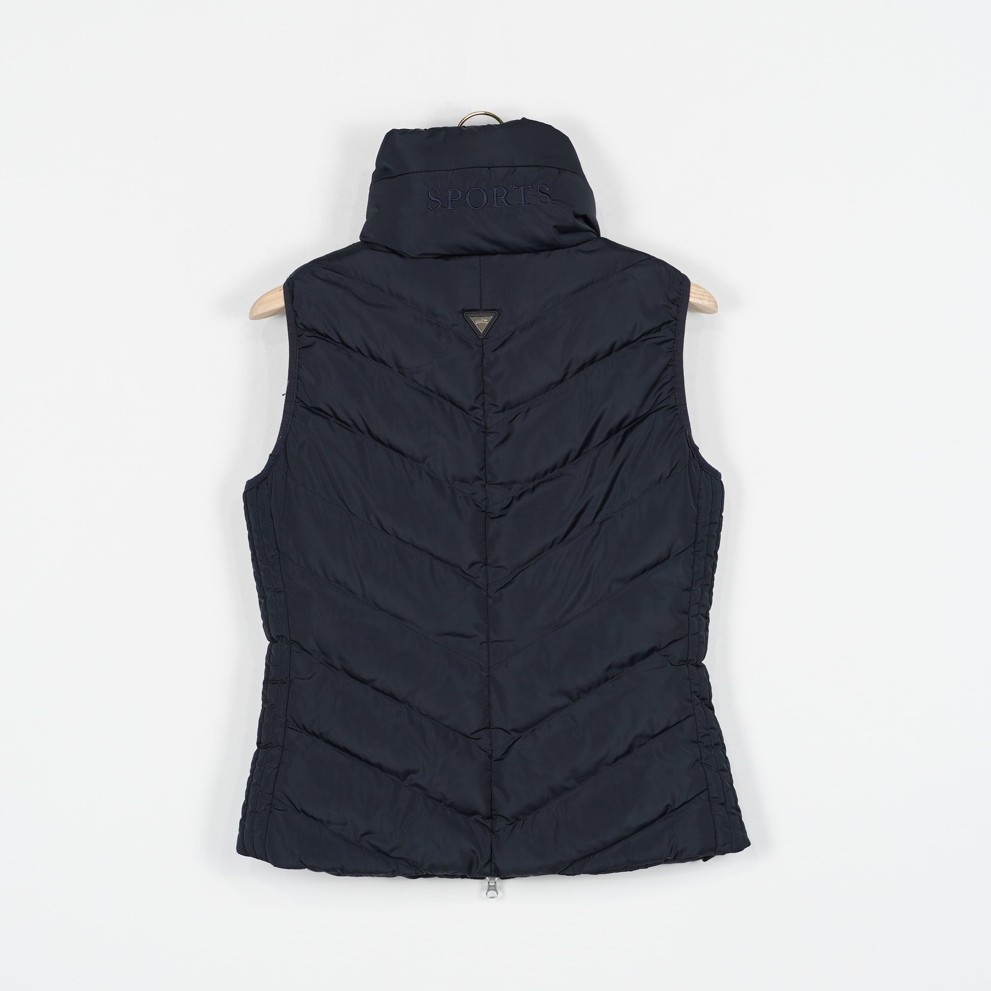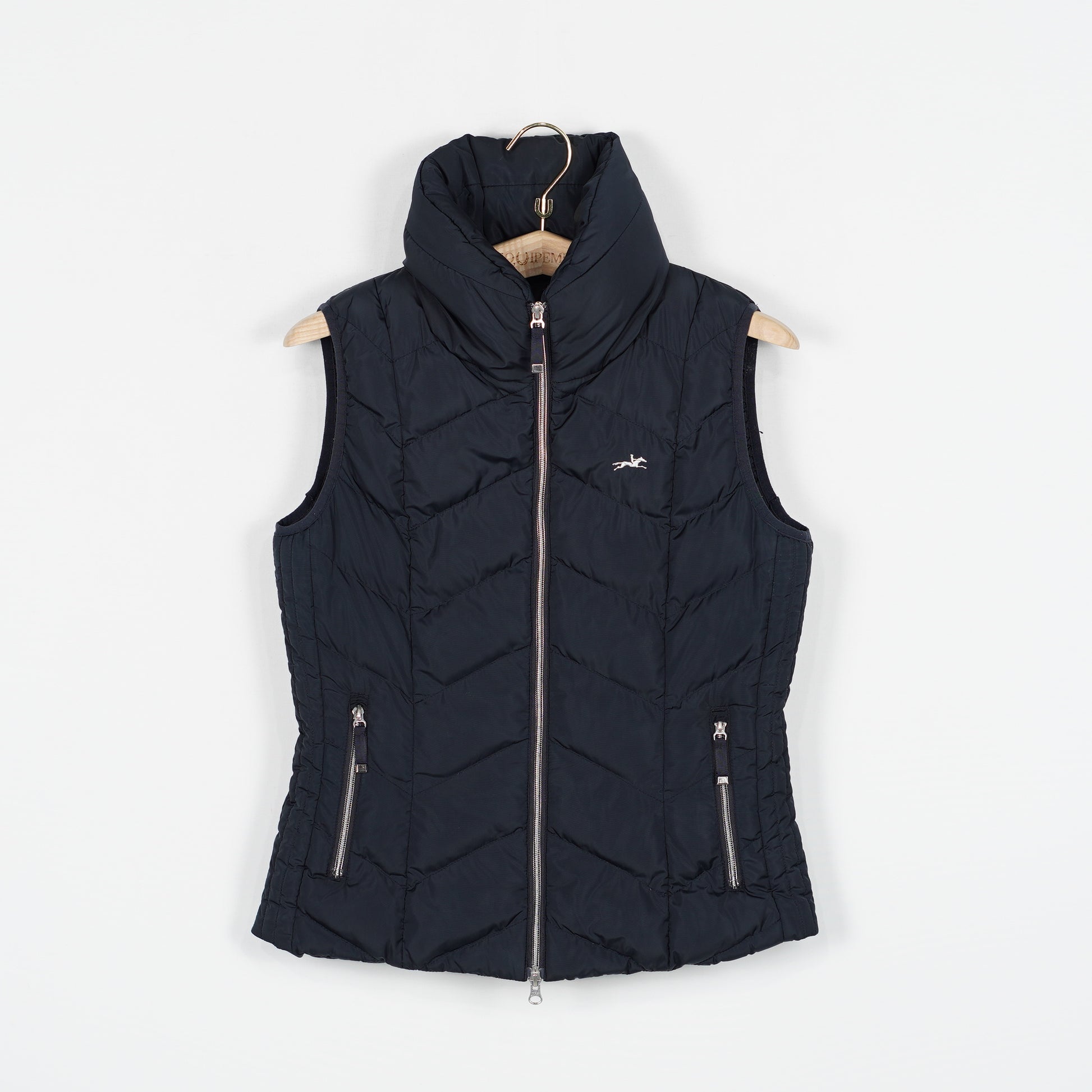 Fodrad väst i mörkblå färg med en extra hög och fluffig krage från Schockemöhle.
