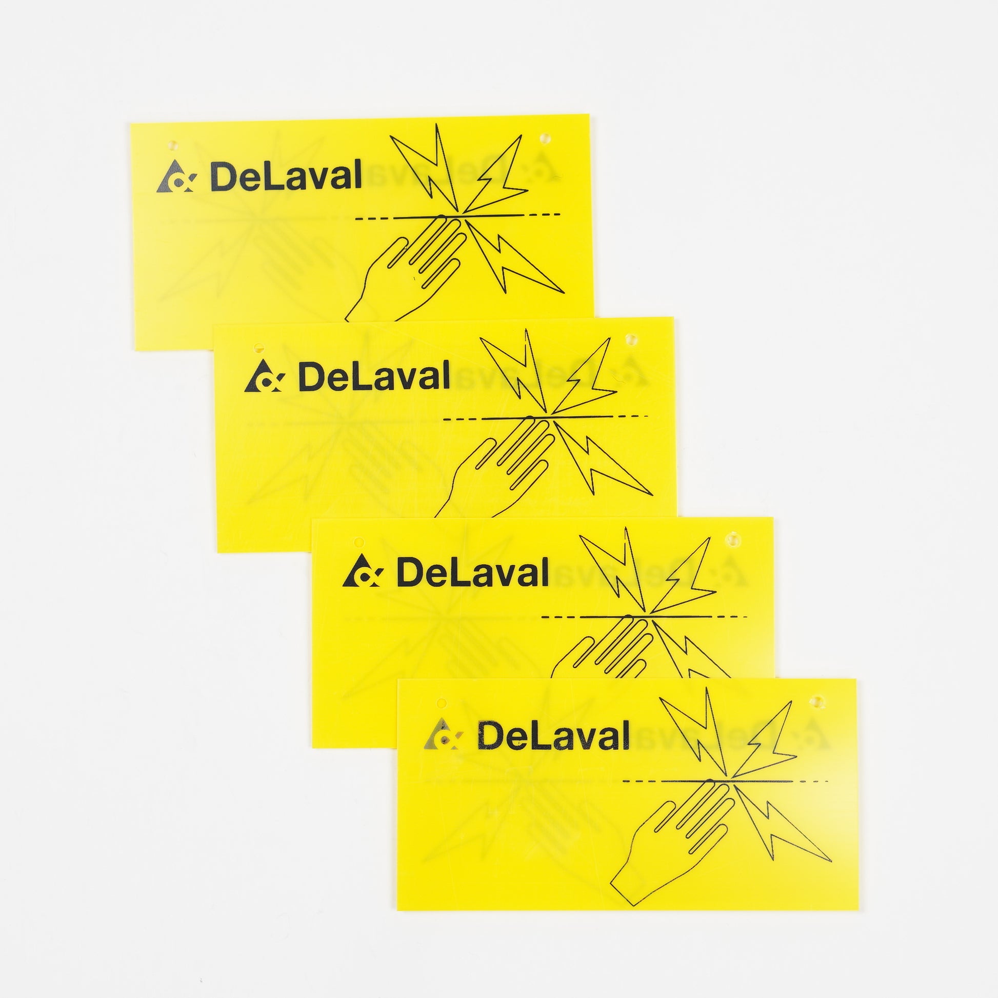 4 st dubbelsidiga varningsskyltar för elstängsel från DeLaval.