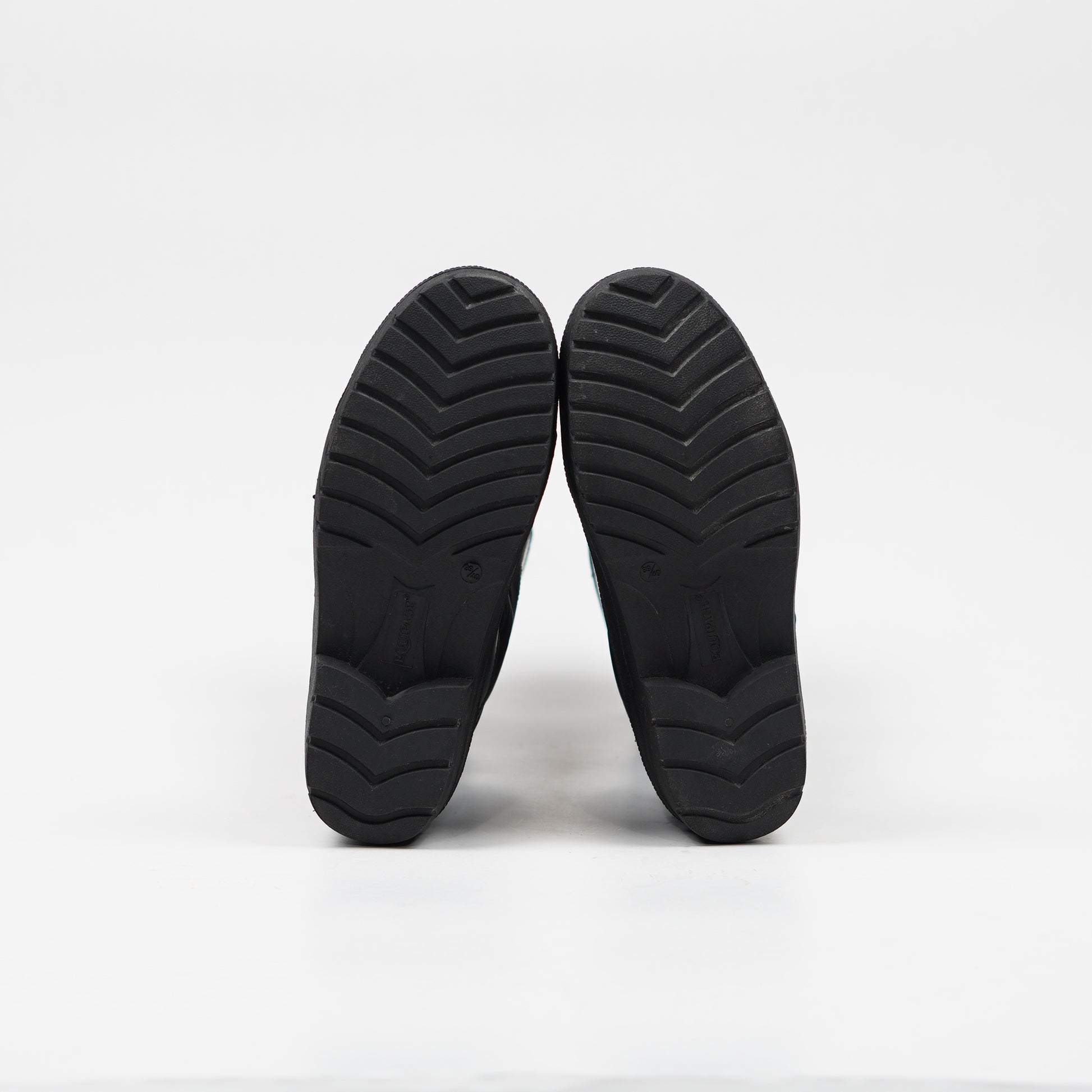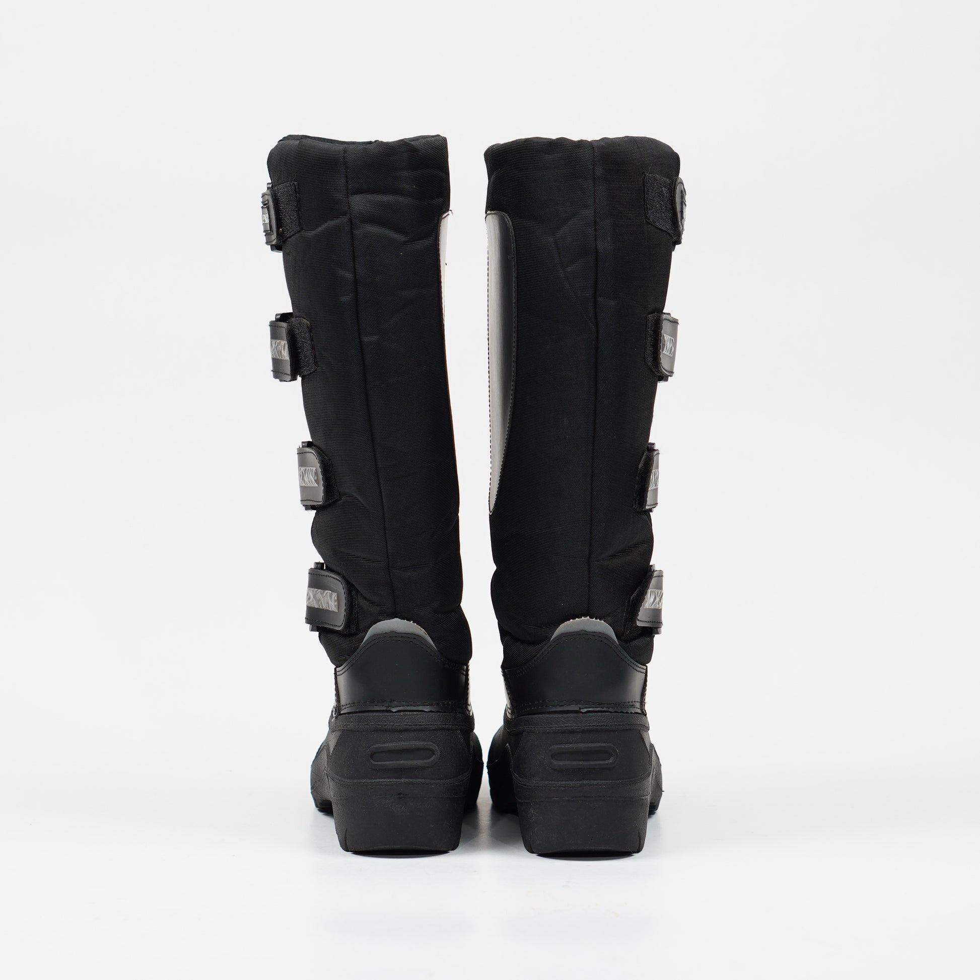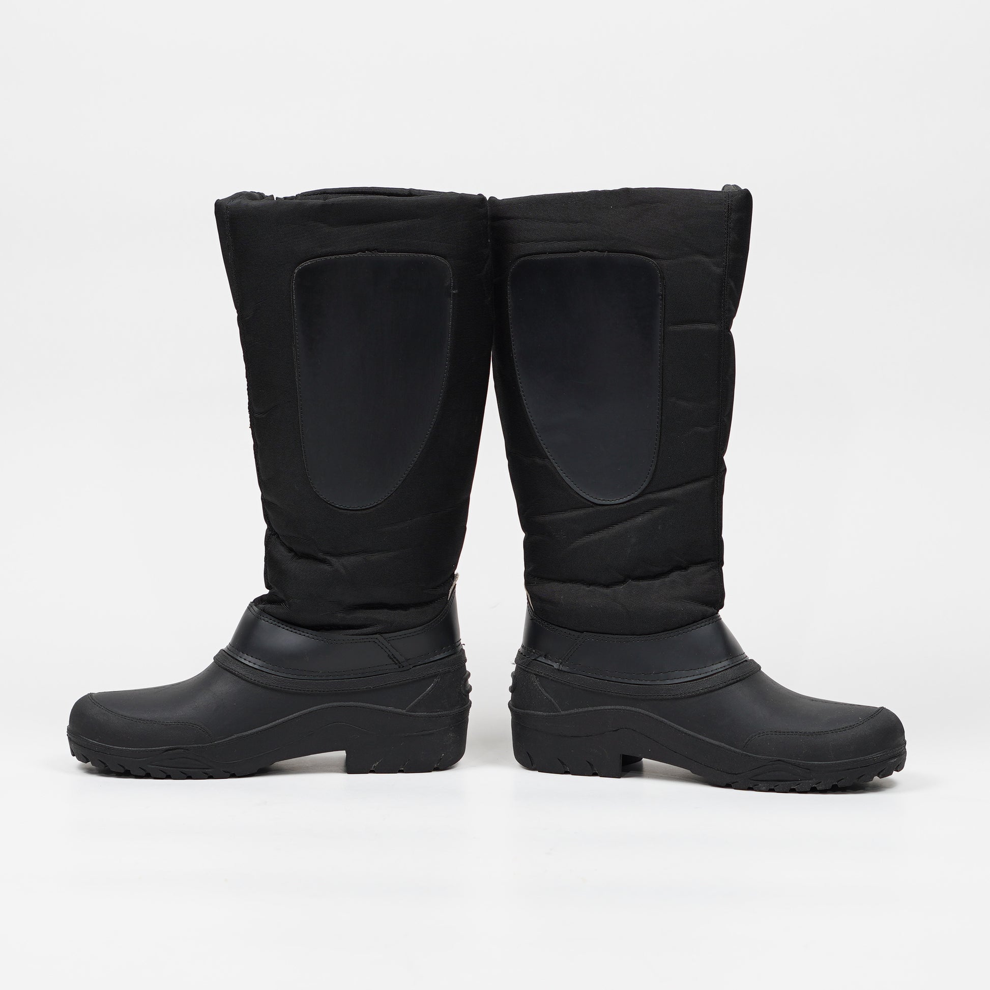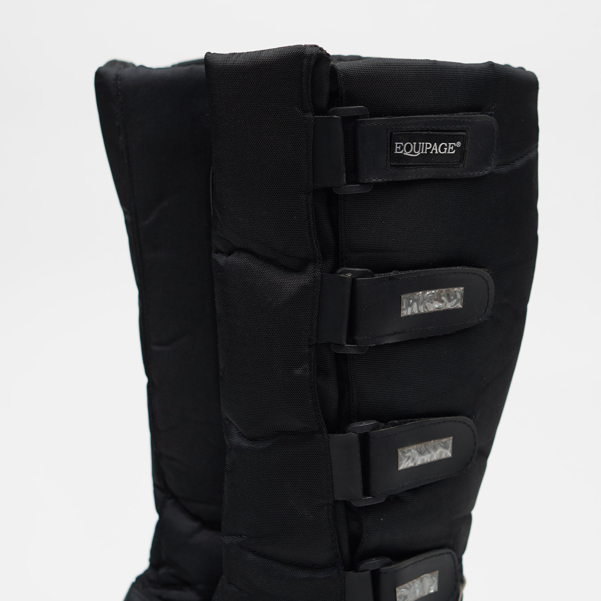 Svarta fodrade ridstövlar med kardborrespännen runt vaden och en fotdel i helgjuten gummi från Equipage.